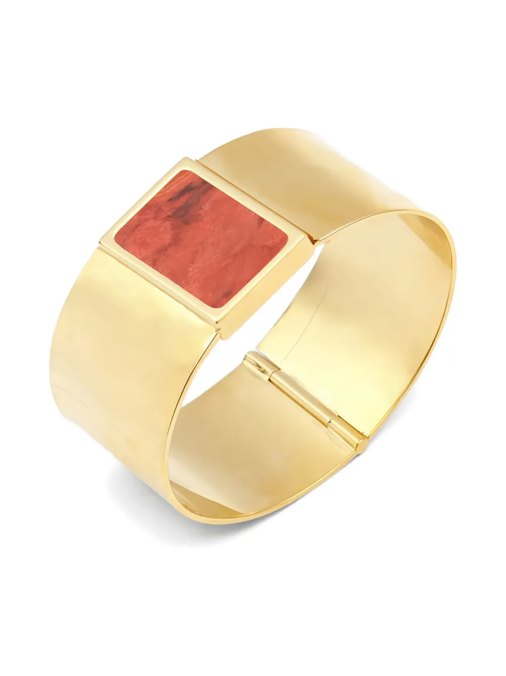 Золотистый оттенок украшение камнями прямоугольный камень петлеобразная застежка широкий браслет-кафф Обычное ежедневное использование и воздействие внешних факторов могут снизить блеск драгоценных камней и золотых поверхностей. Для ухода используйте специальные неабразивные средства, предназначенные для чистки ювелирных изделий.