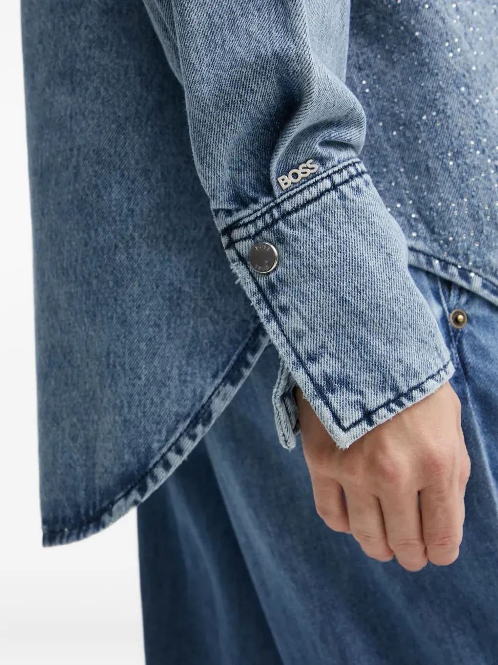 Джинсовая рубашка, украшенная кристаллами BOSS, синий