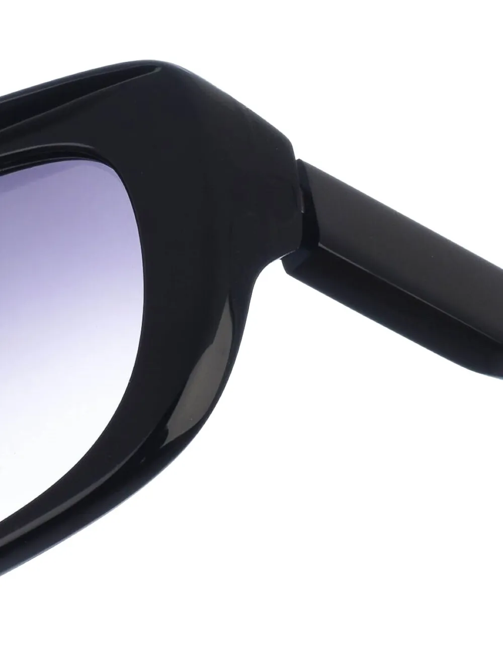 Черная оправа квадратной формы, тонированные линзы. В комплекте идет защитный футляр.