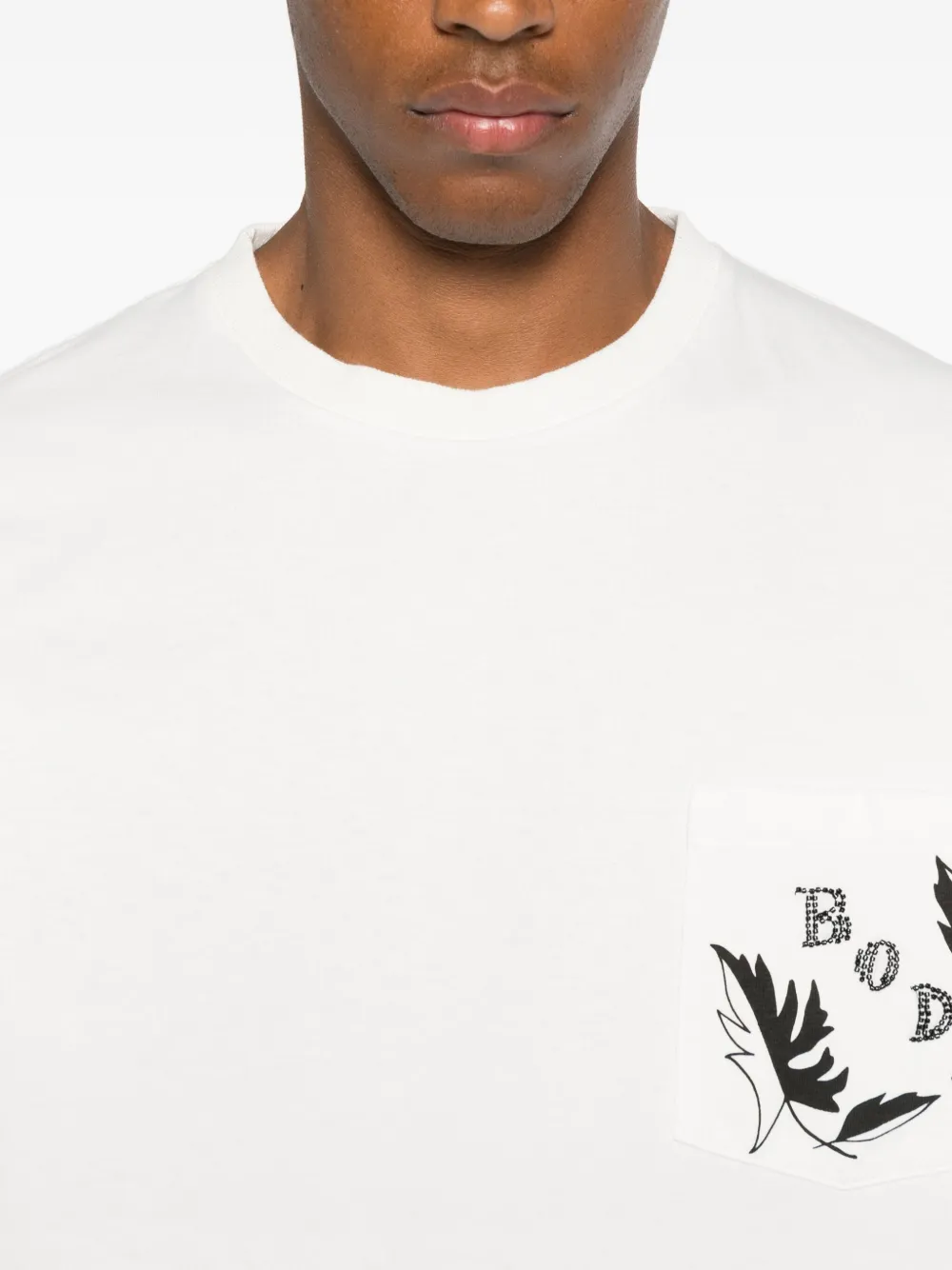 Футболка с карманом в виде бусинированного листа BODE, белый