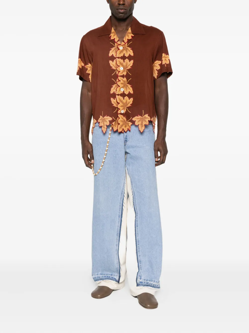Рубашка с листовым принтом и фигурным краем BODE, коричневый