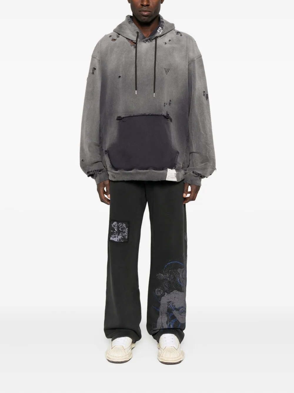 Хлопковое худи с эффектом потертости Maison Mihara Yasuhiro, черный 55 227₽