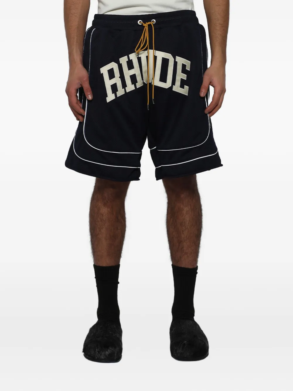 Сетчатые шорты с логотипом в колледжском стиле RHUDE, синий