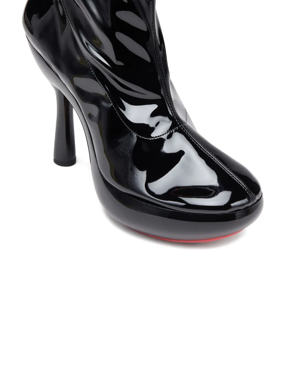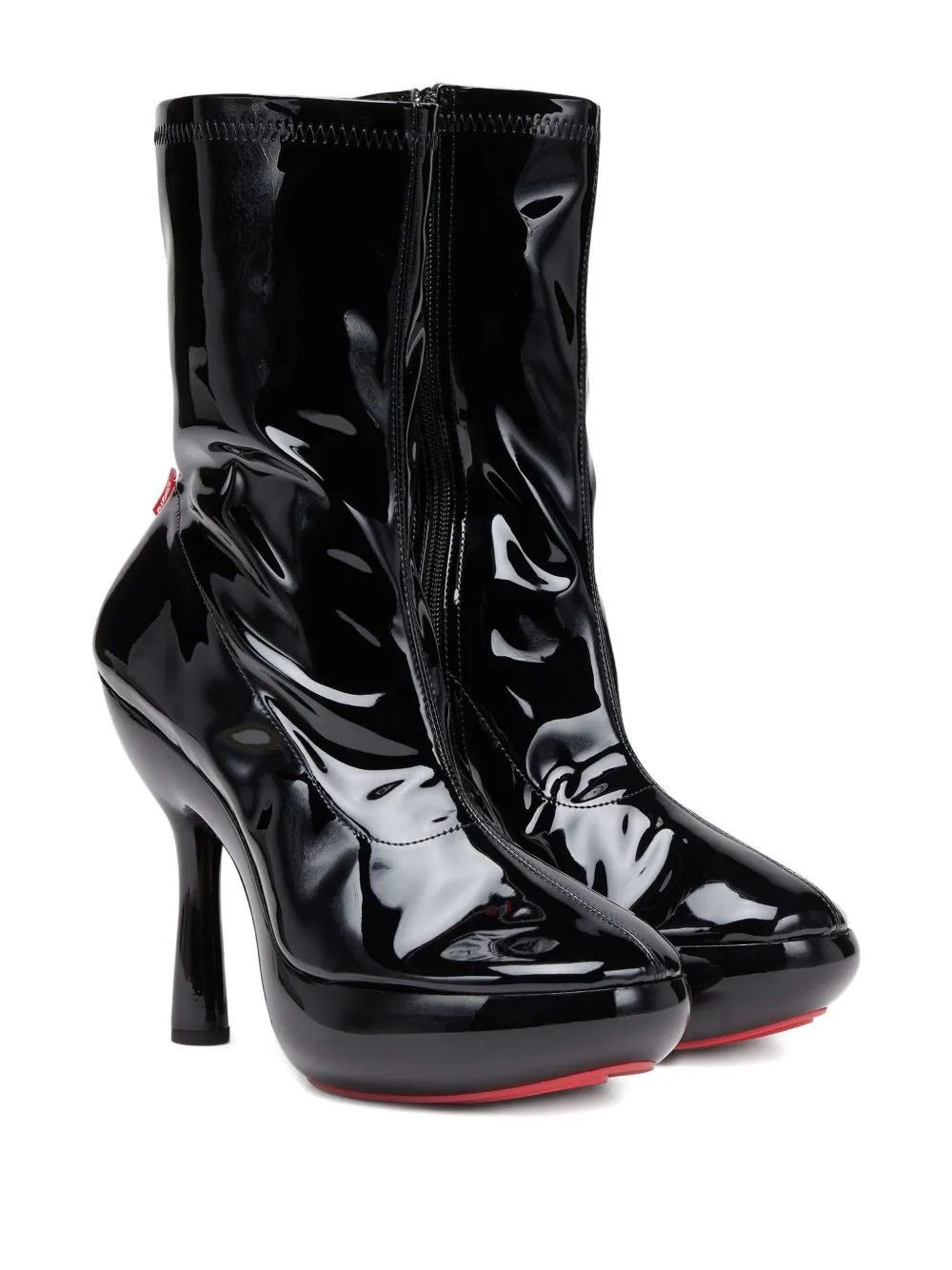 Черный лакированная кожа платформенная подошва застежка-молния фигурный каблук круглый носок