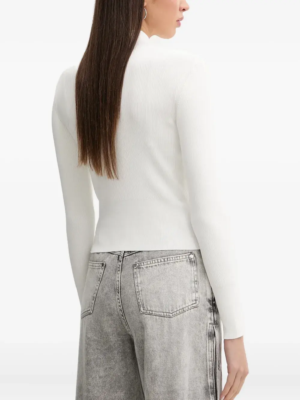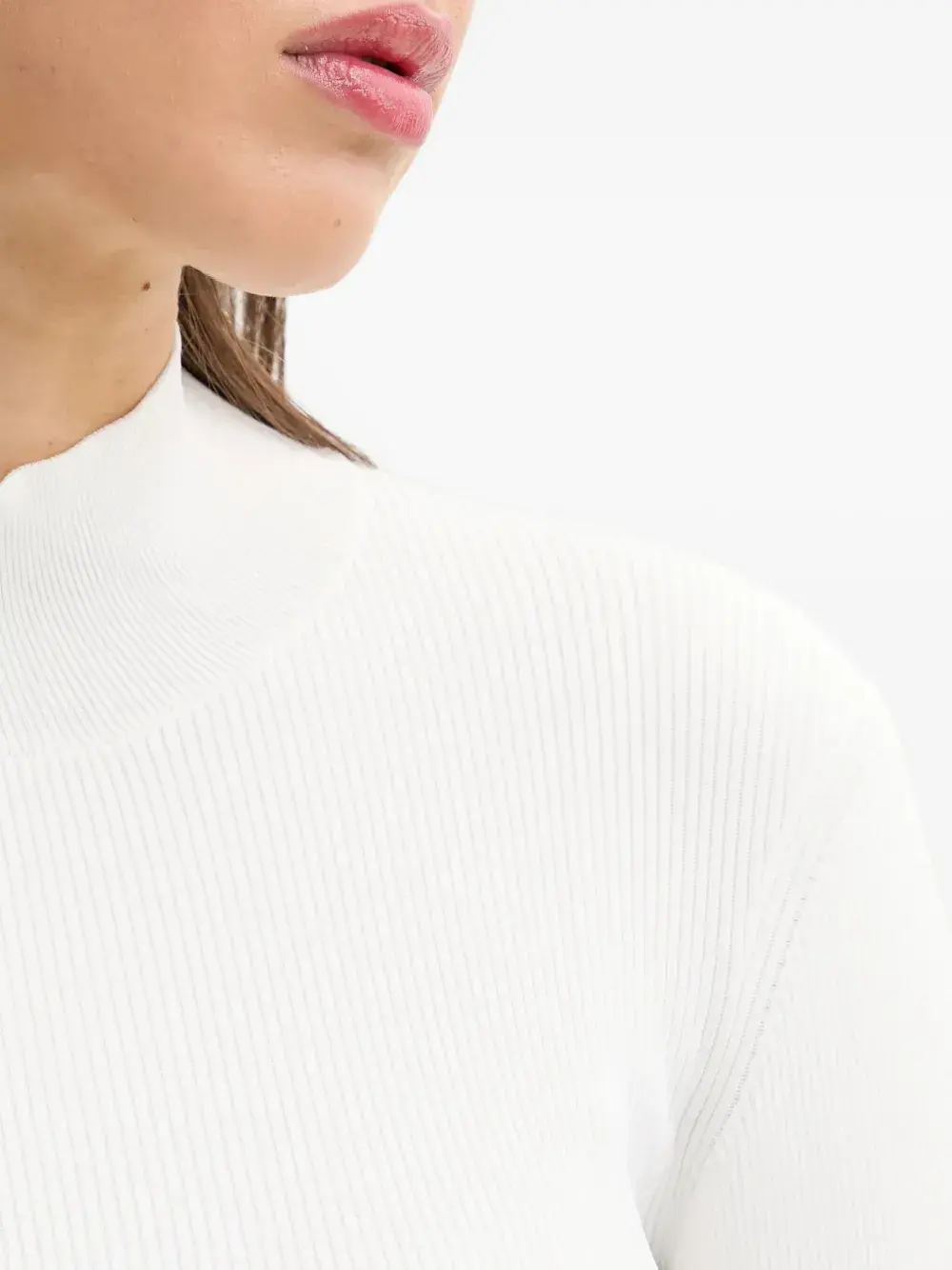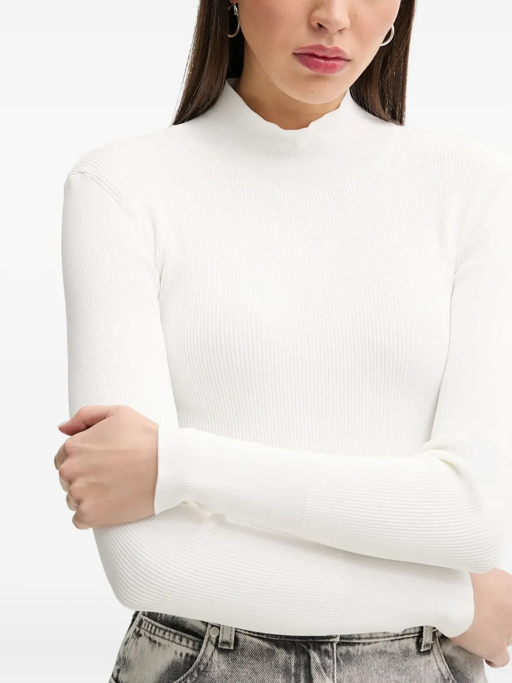 Белая в рубчик водолазка с длинными рукавами