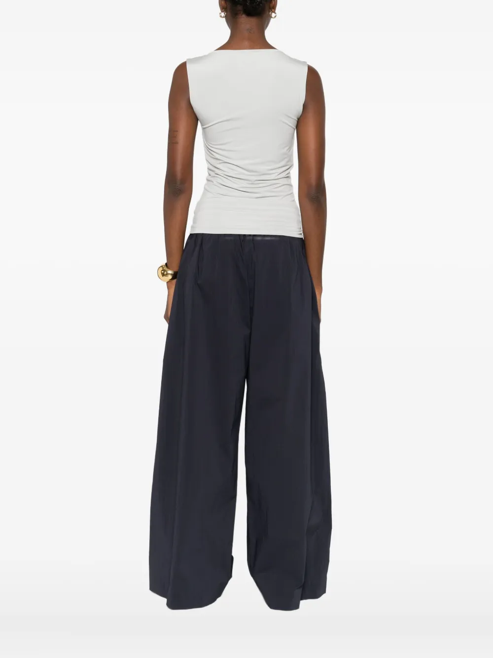 Серый топ без рукавов с вырезом лодочка и прямым подолом