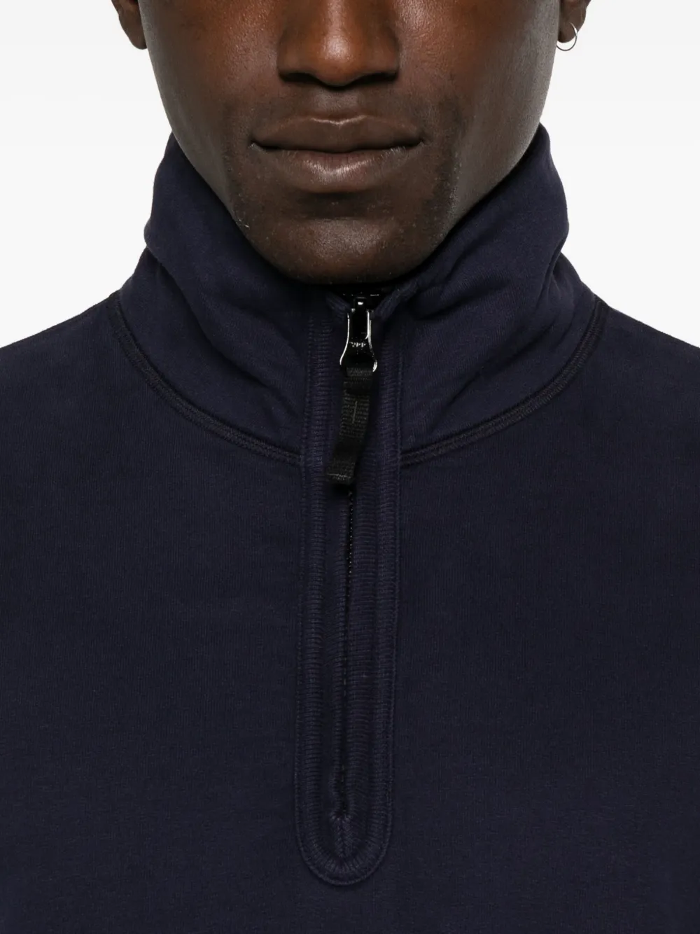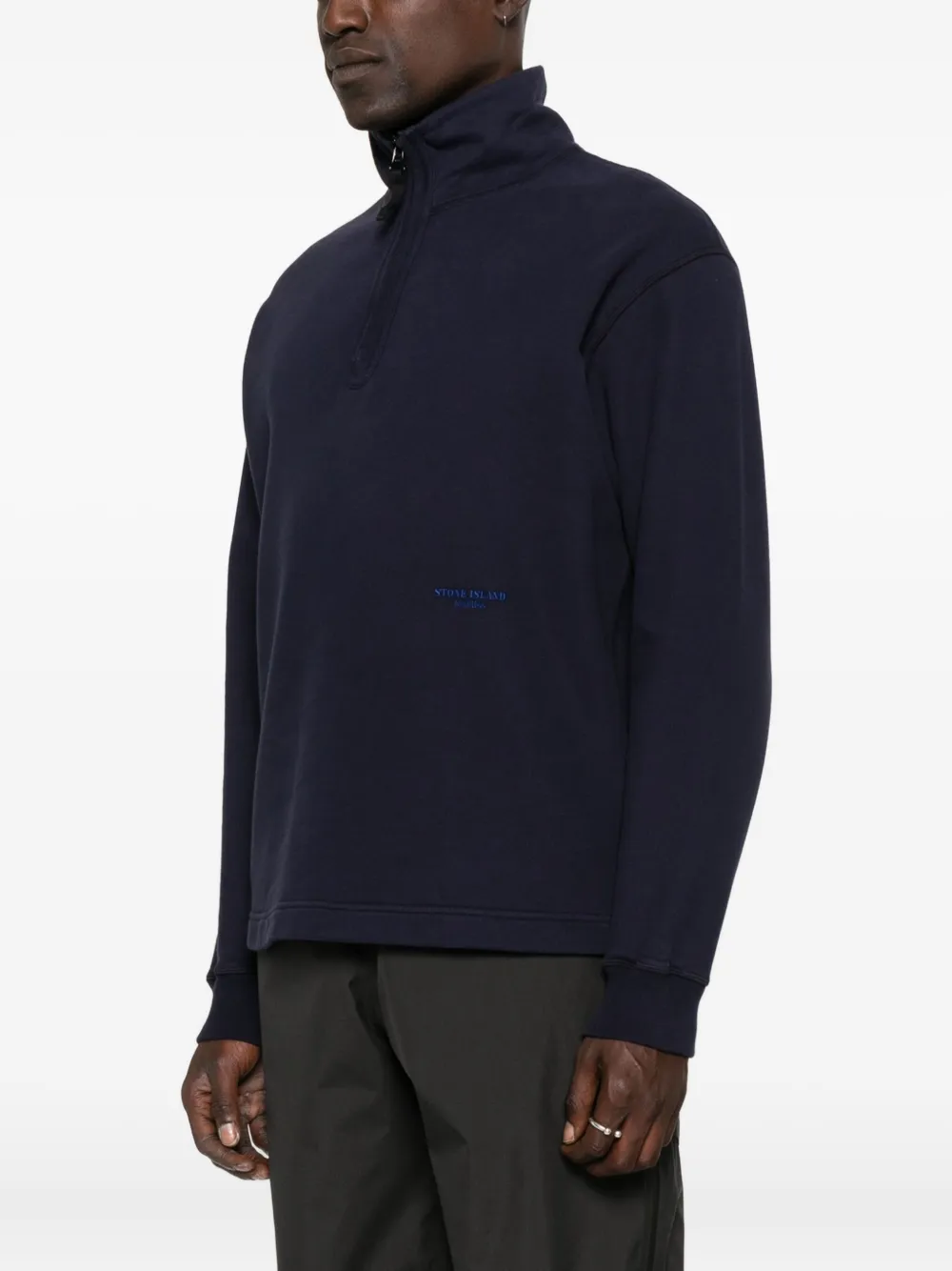 Темно-синий застежка на половину молнии длинные рукава ребристые манжеты вышитый логотип