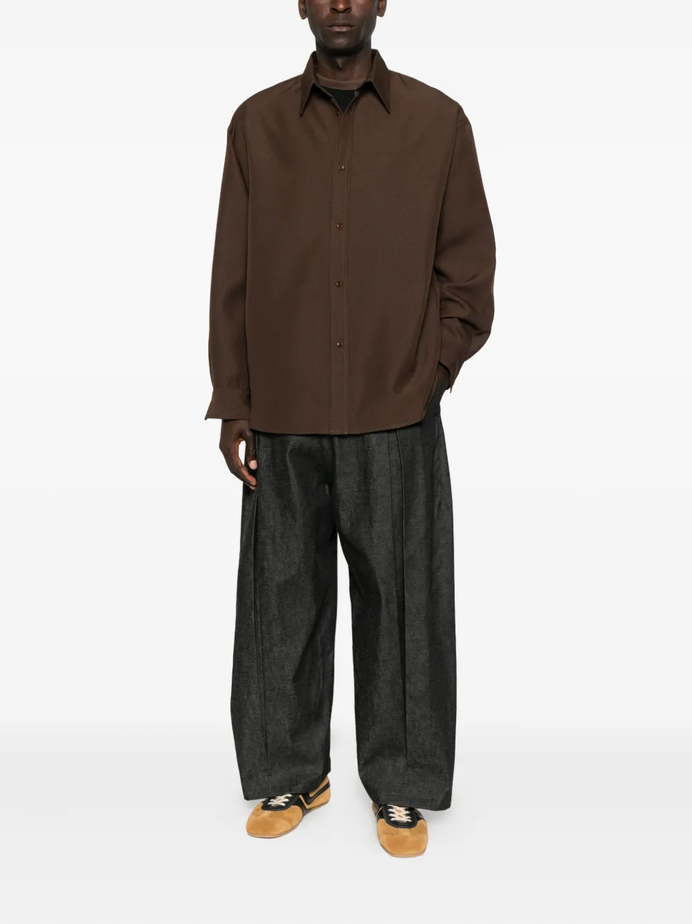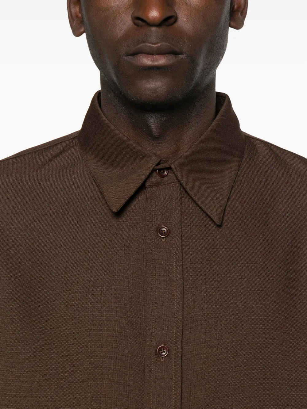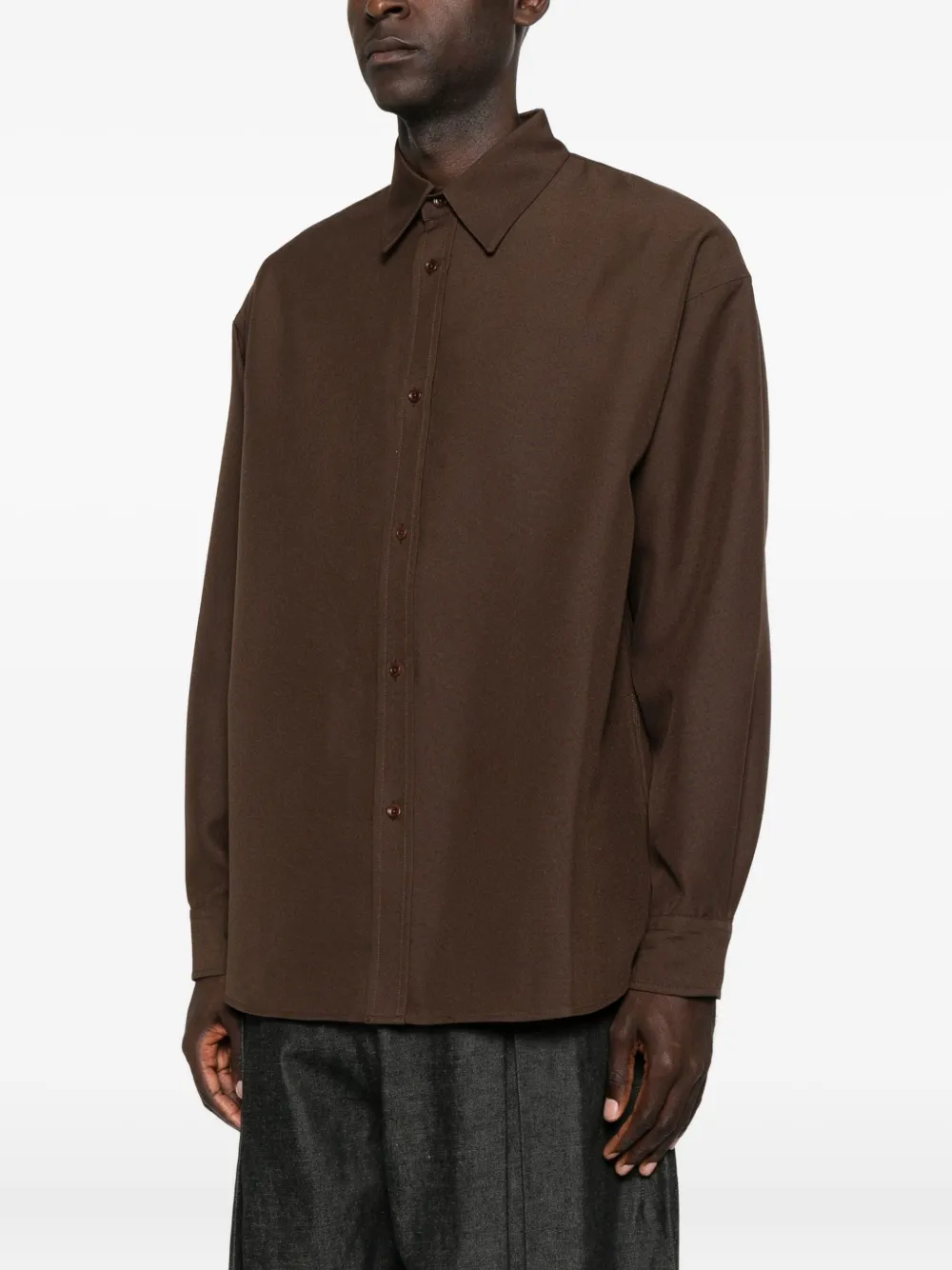 Коричневый застежка на пуговицы спереди длинные рукава манжеты на пуговицах закругленный подол