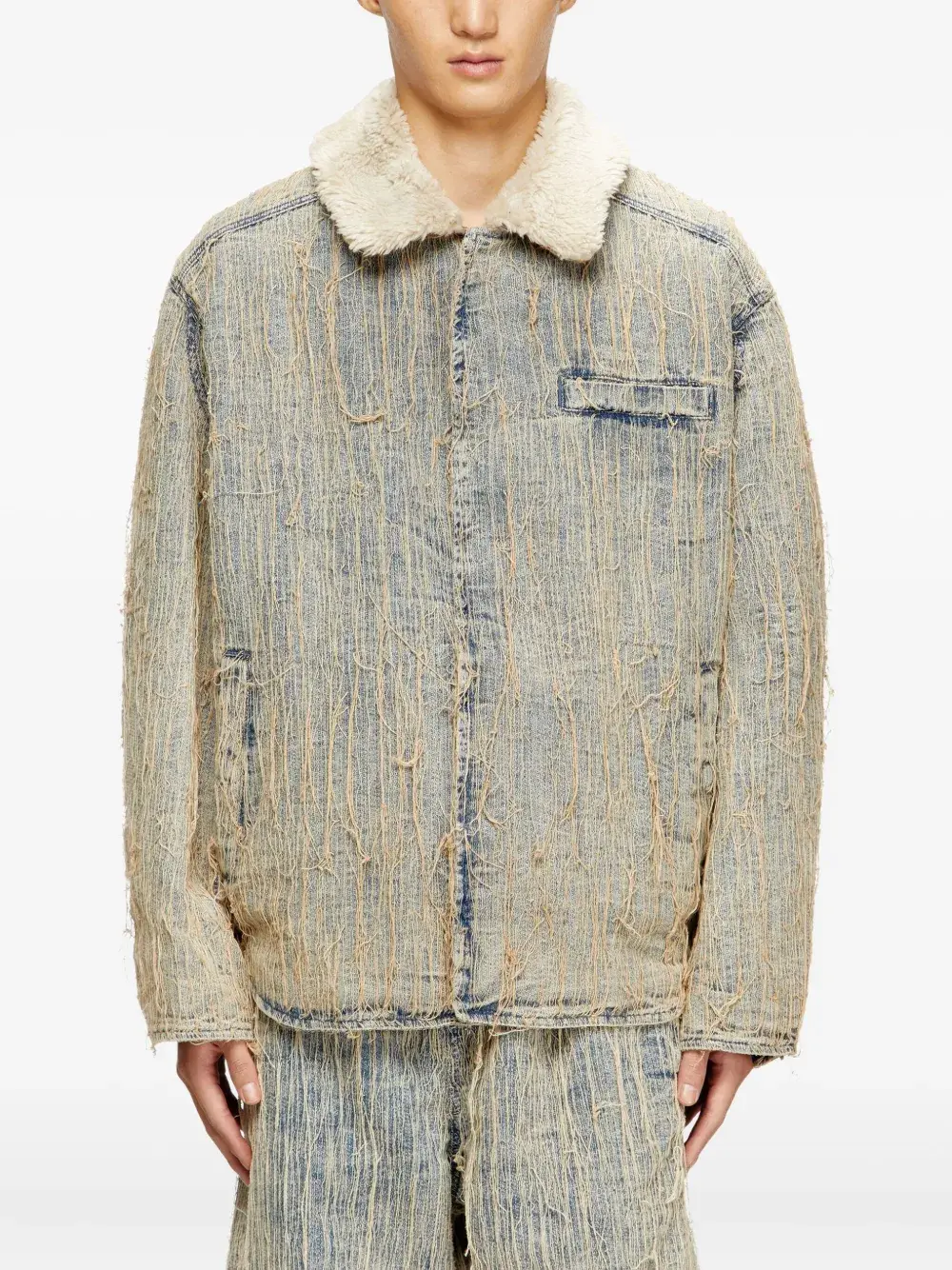 Светло-голубой воротник из шерпы застежка на пуговицы нагрудный карман