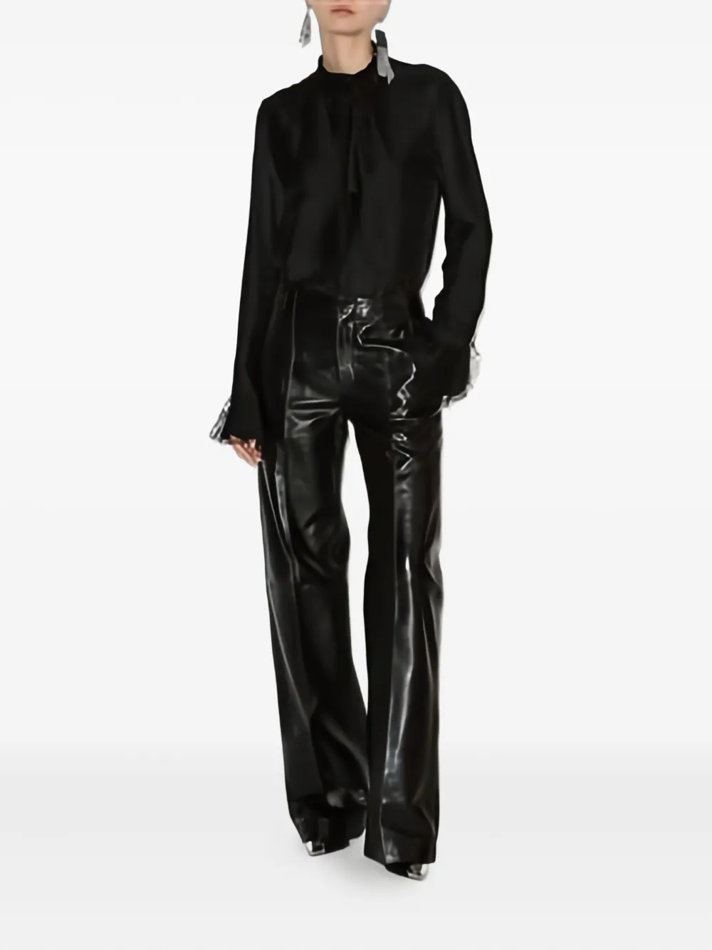Черный высокий воротник застежка с бантом на шее манжеты с рюшами
