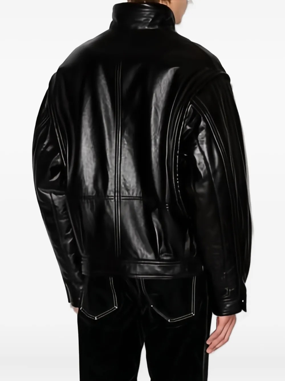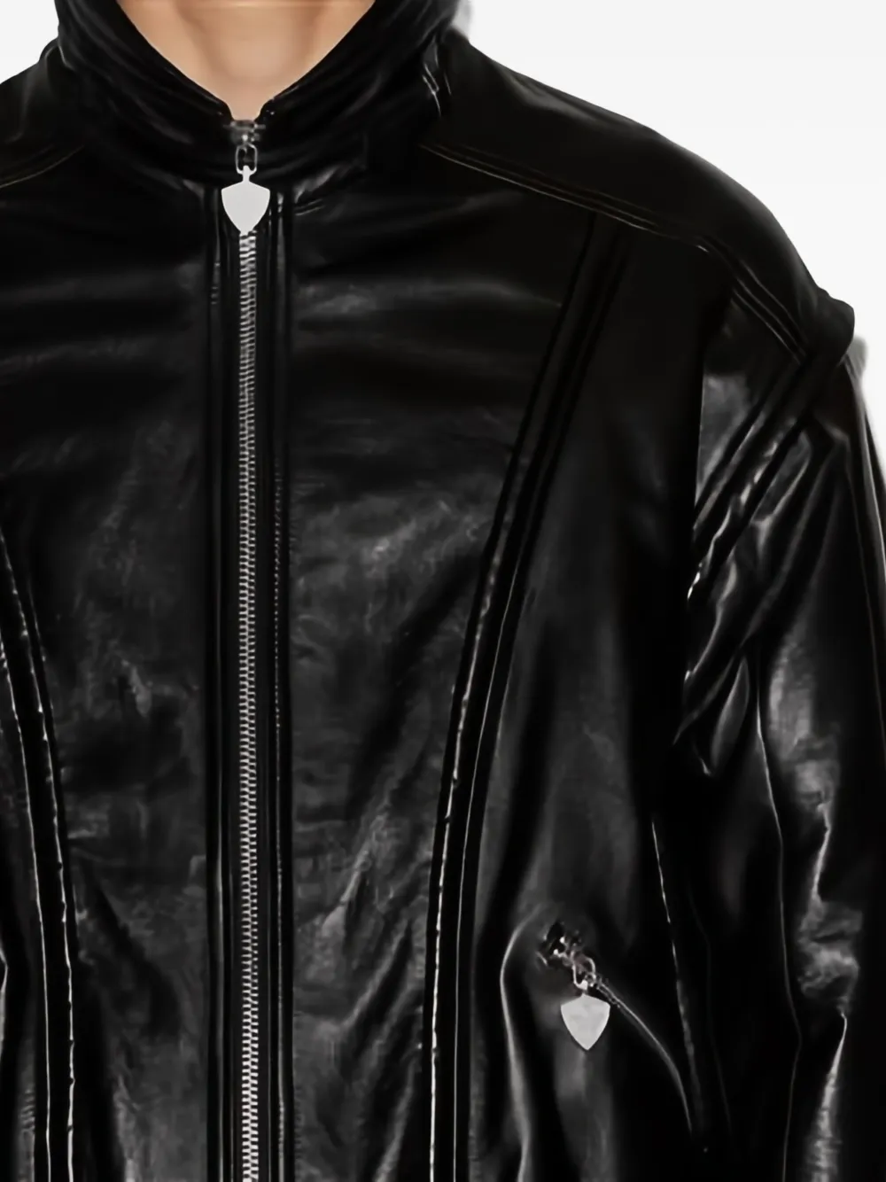 Черный кожа застежка-молния спереди дизайн с панелями приталенные манжеты