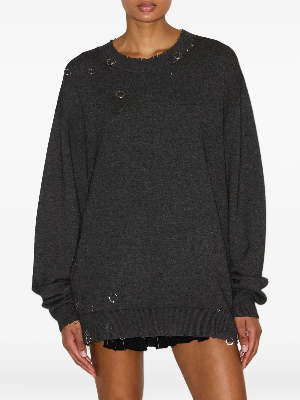 Темно-серый металлические кольца-декор необработанные края длинные рукава