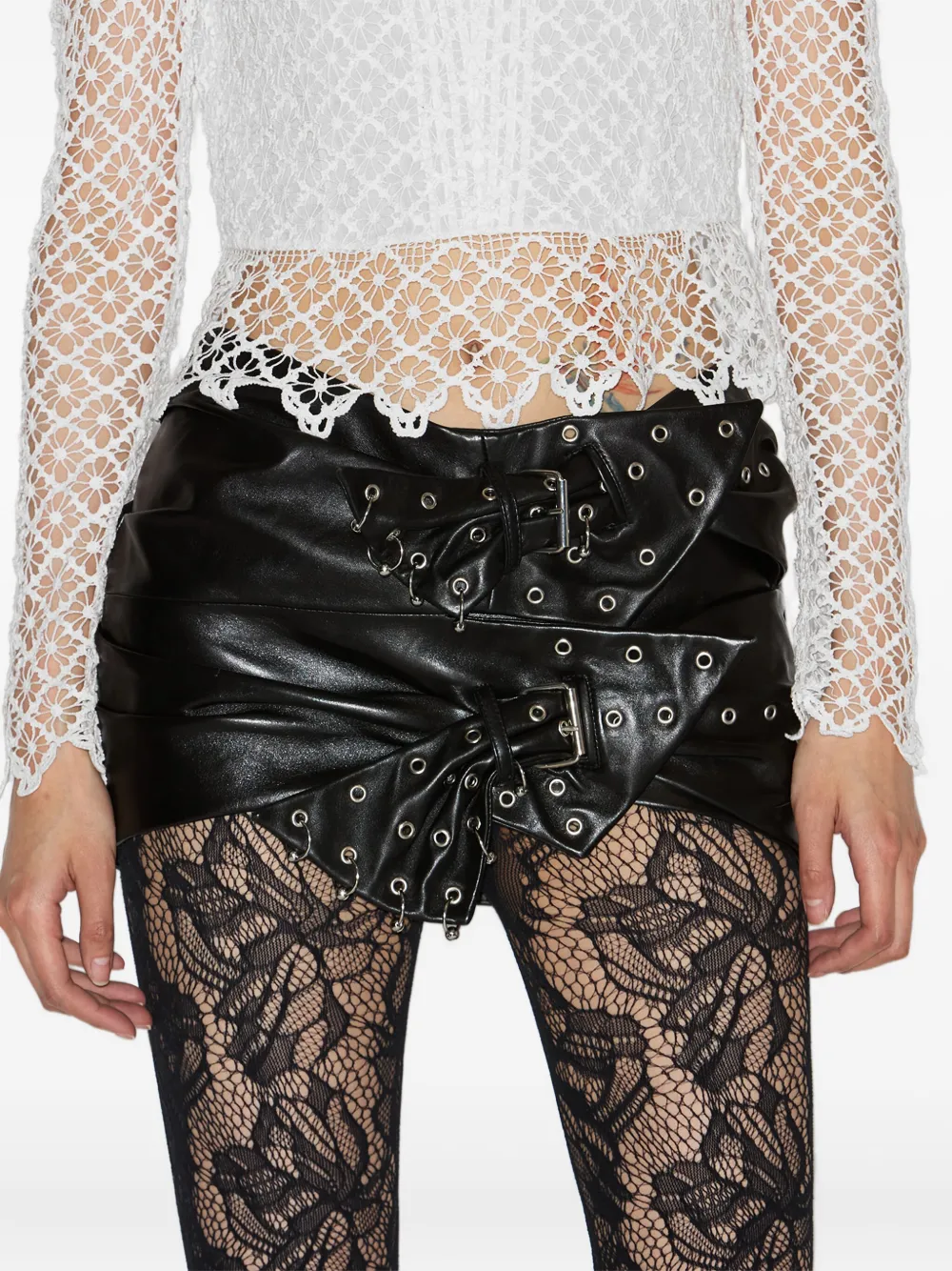 Черная овечья кожа детали с пряжкой детали с люверсами драпированный дизайн