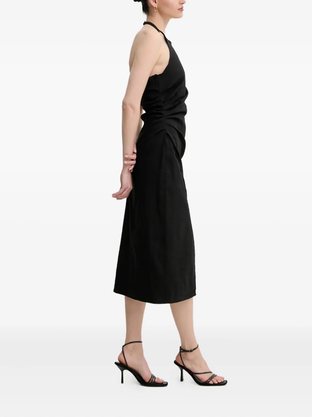 Платье миди с драпировкой и воротником-халтер A.L.C., черный