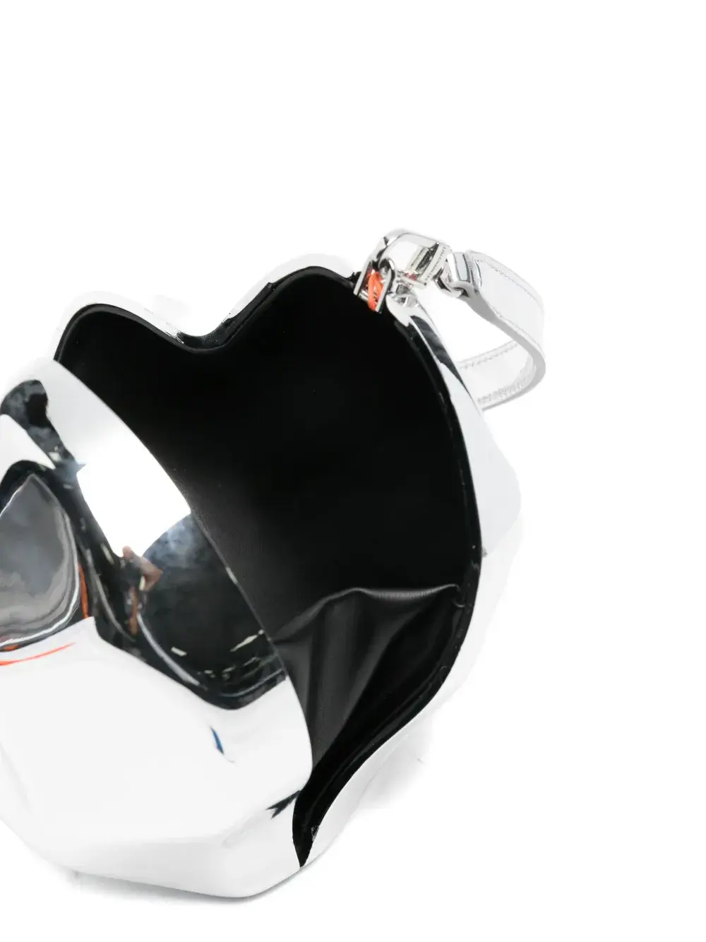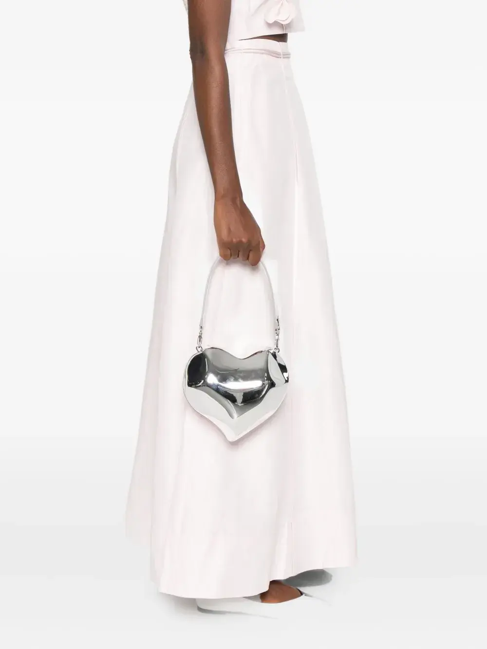 Серебристая сумка с формованным дизайном в виде сердца, верхней ручкой, цепочкой-ремешком и застежкой-защелкой