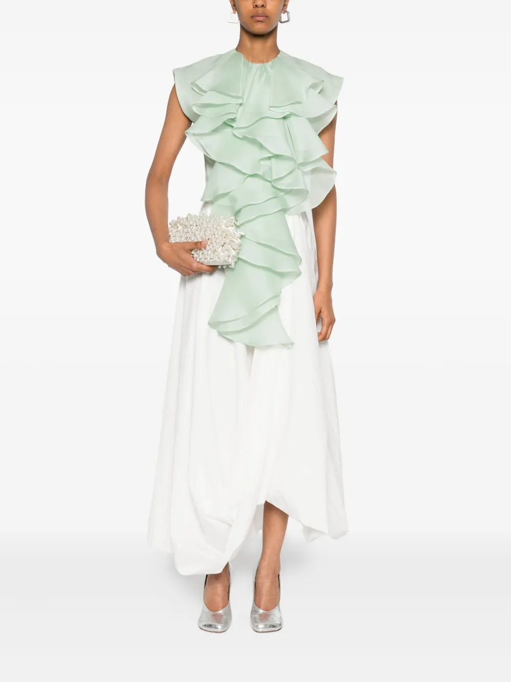 Шелковый топ с оборками Viktor & Rolf, зеленый 118 935₽
