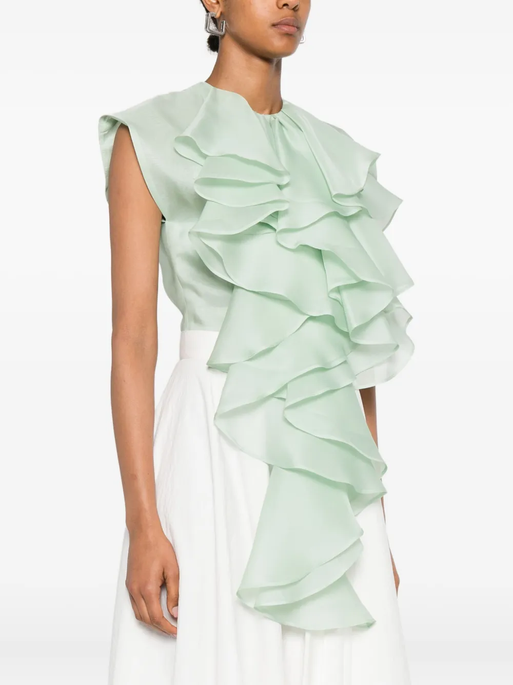 Шелковый топ с оборками Viktor & Rolf, зеленый