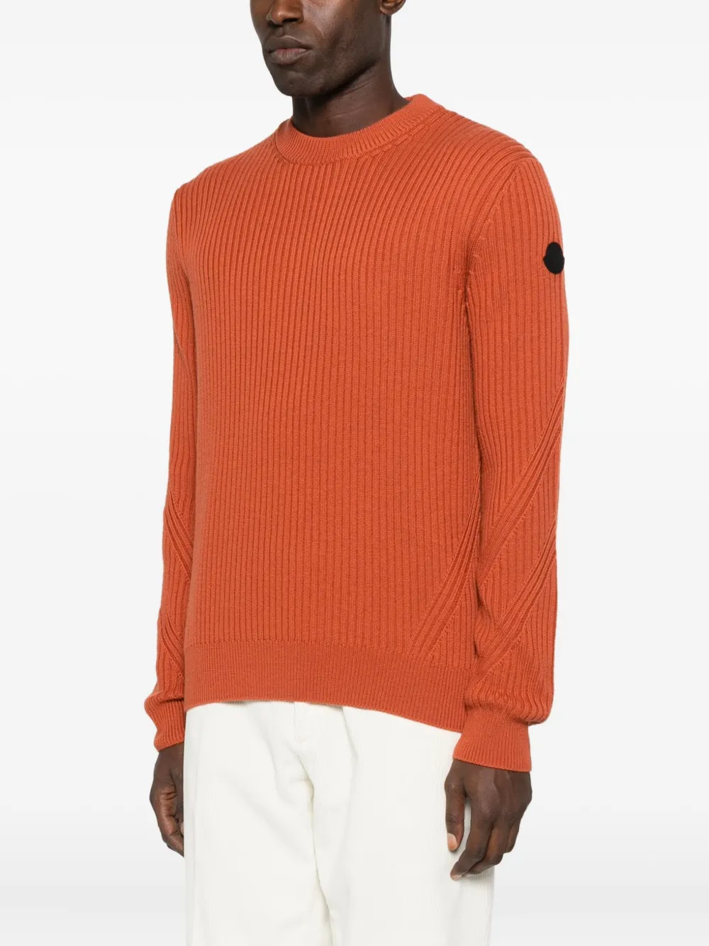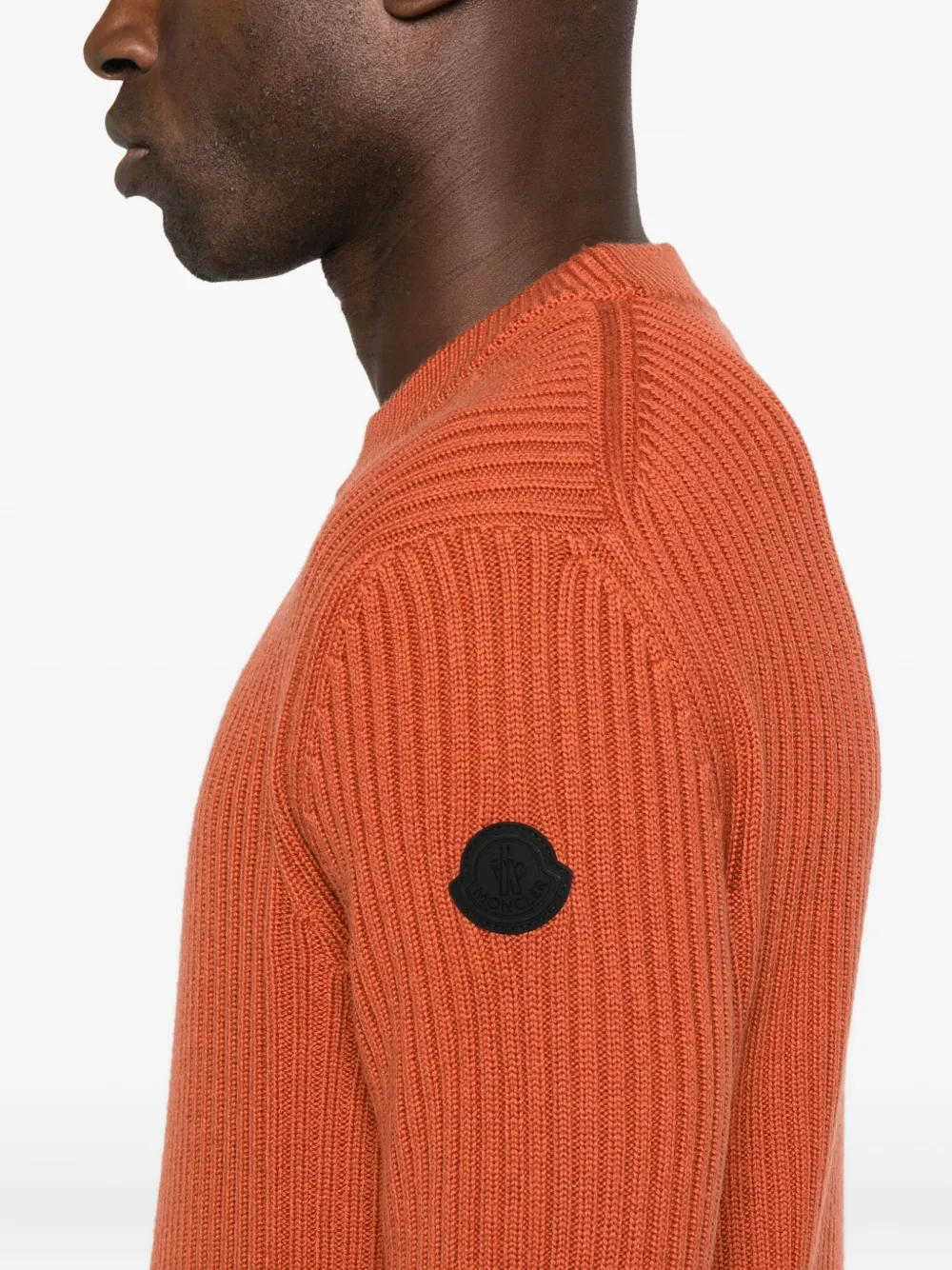 Свитер в рубчик с круглым вырезом MONCLER, оранжевый