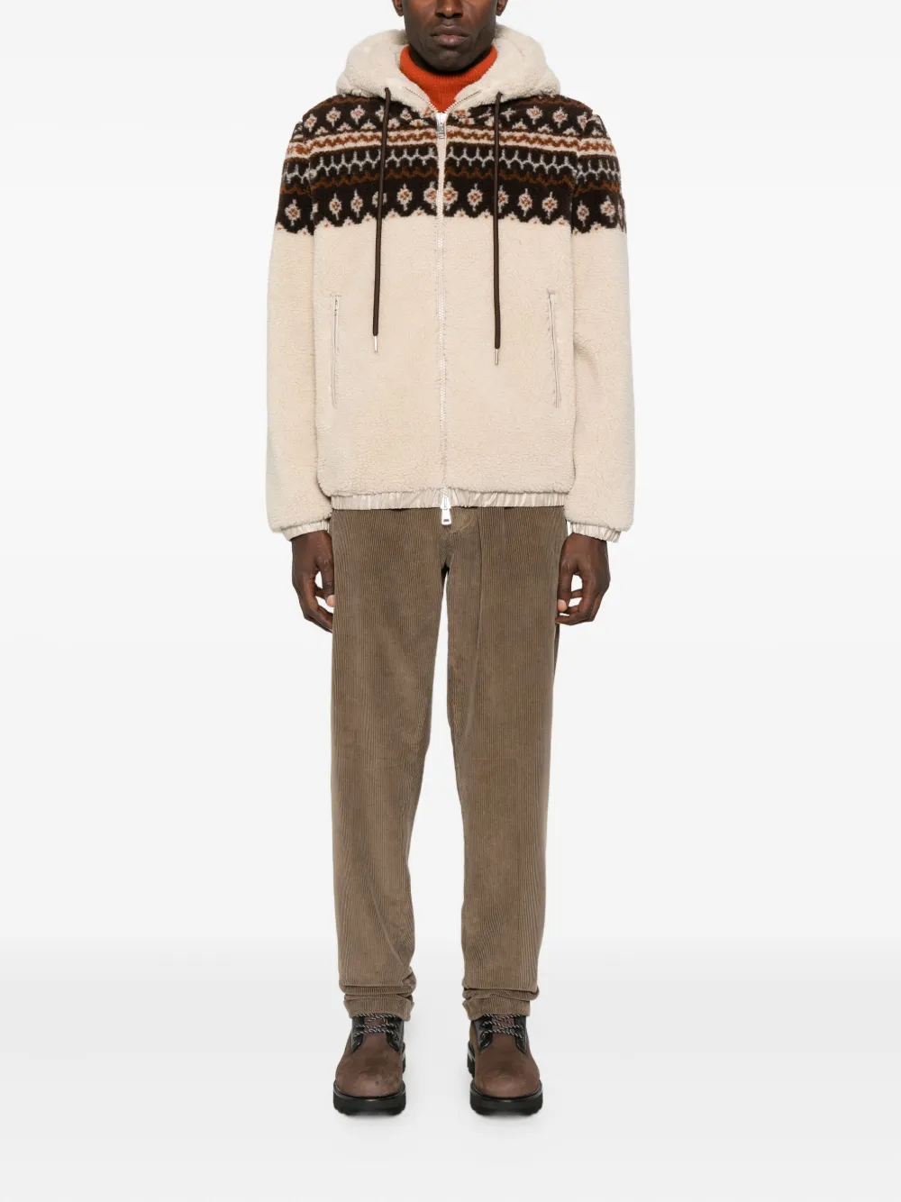 Средний бежевый узор в стиле Fair Isle застежка-молния капюшон длинные рукава два кармана на молнии