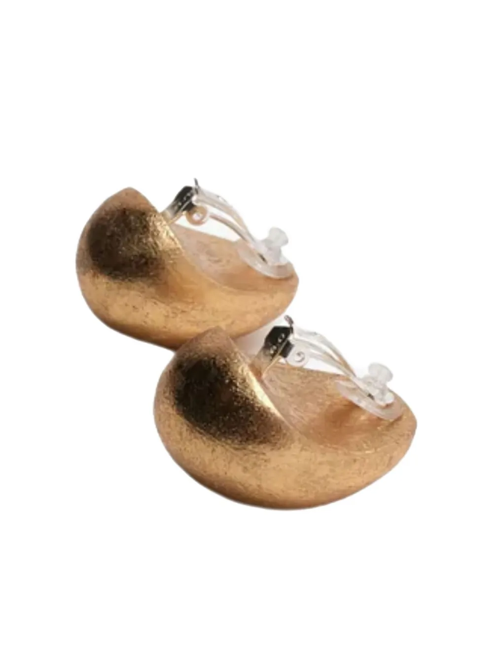 Золотистый оттенок, отделка под молоток, изогнутая форма, застежка-клипса. Эти серьги идут в паре.