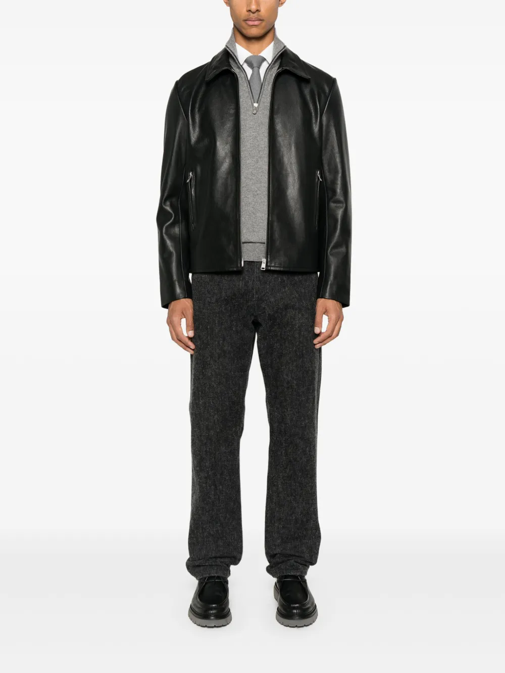 Кожаная куртка на молнии SANDRO, черный