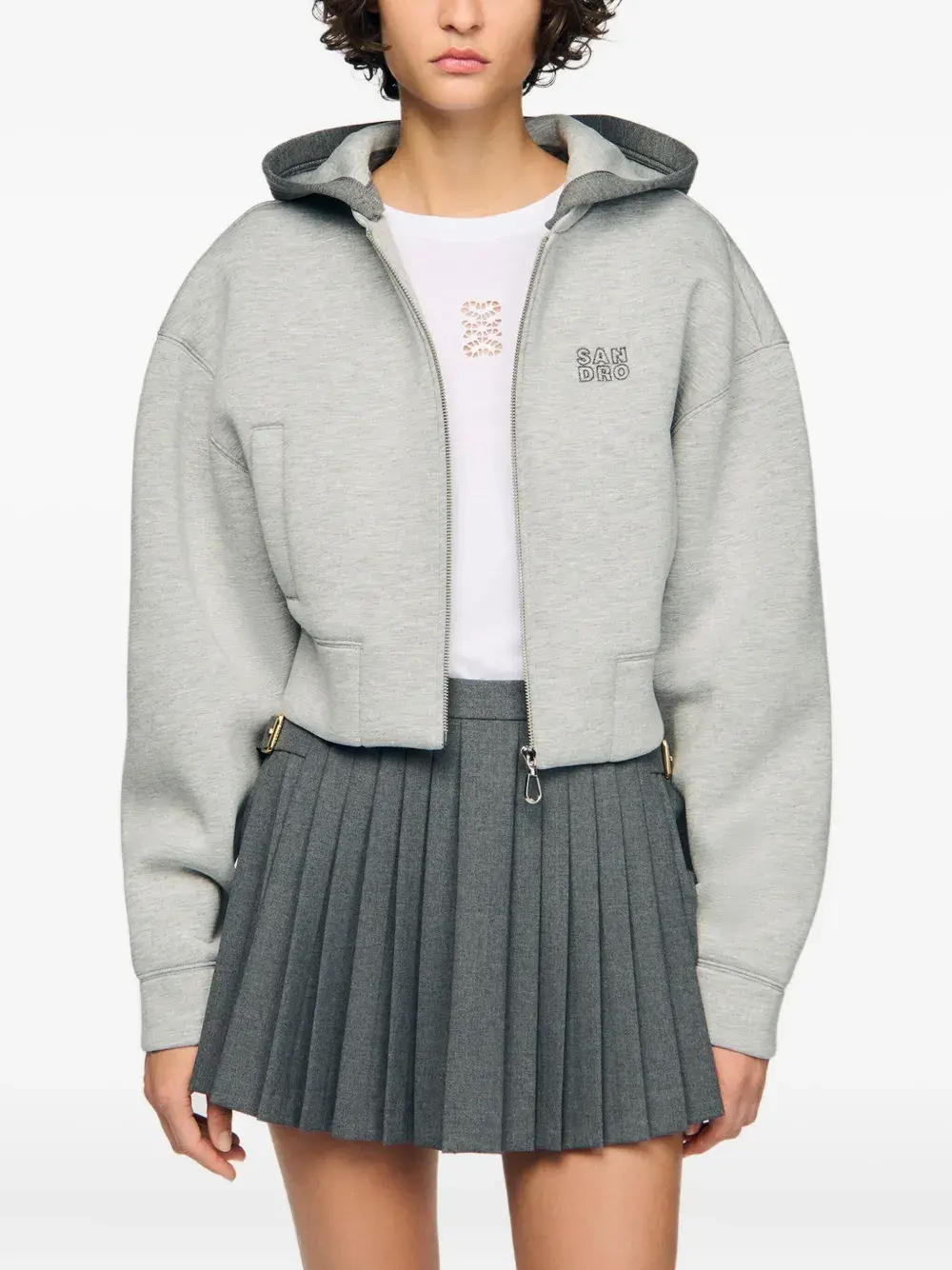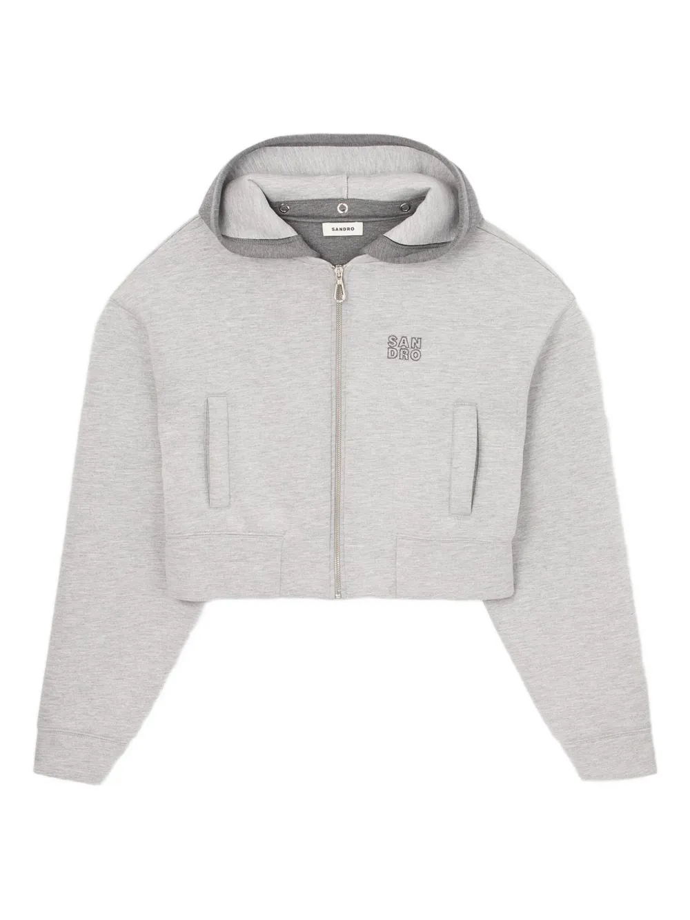 Серый контрастный капюшон вышивка на груди застежка-молния длинные рукава боковые карманы