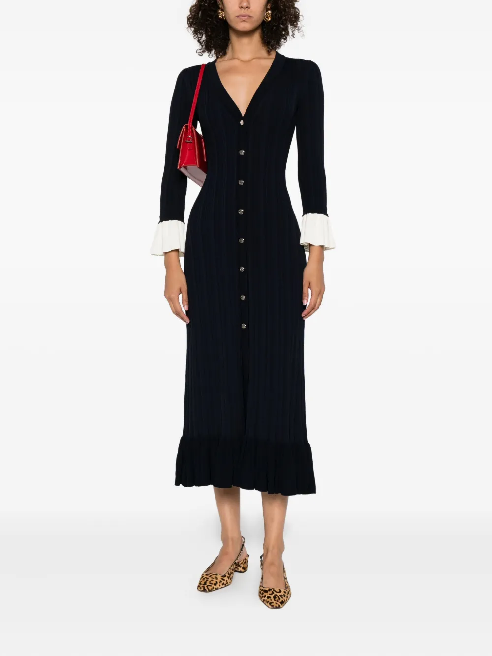 Платье миди с оборками SANDRO, синий