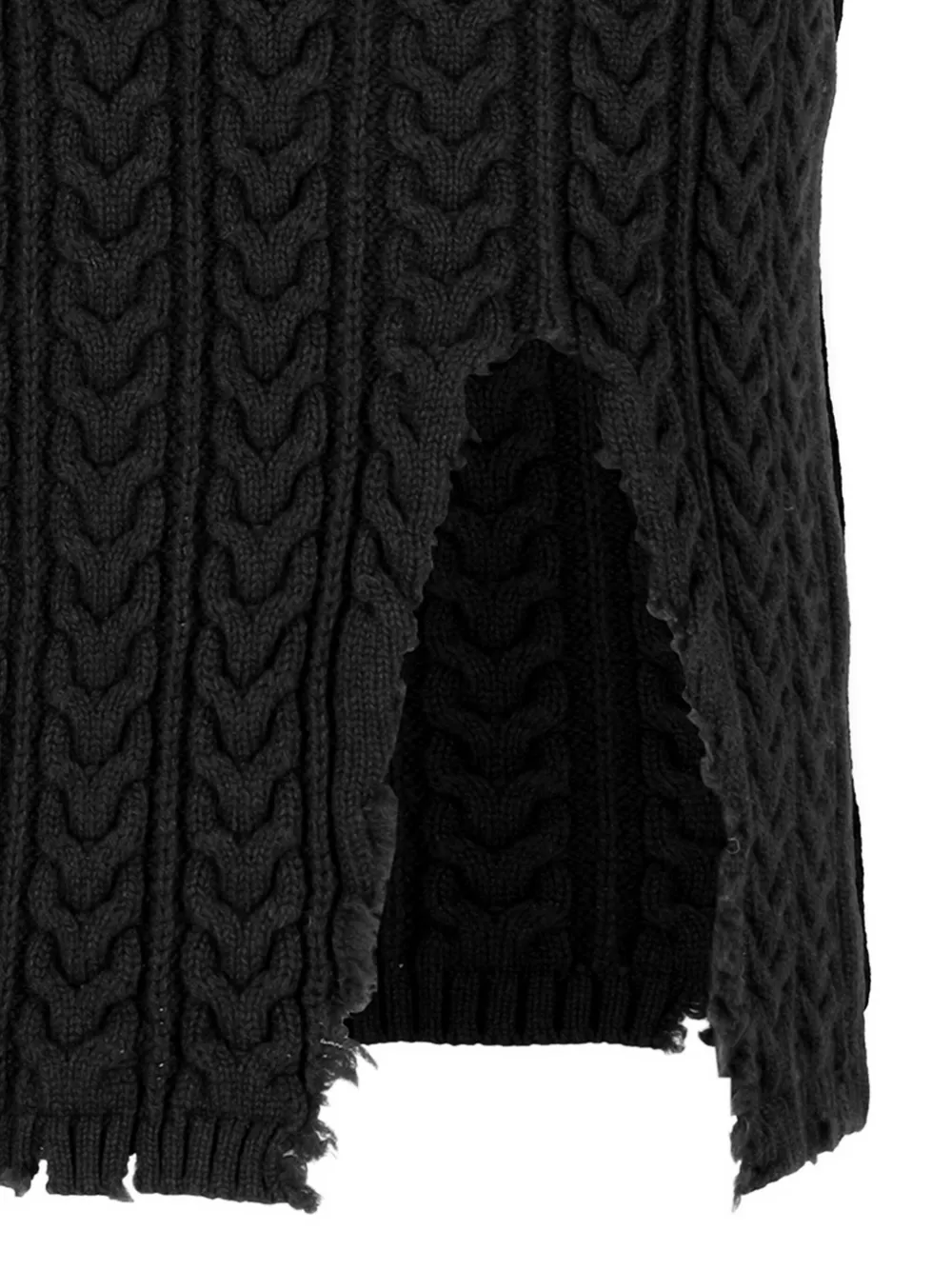 Черная вязаная (косами) юбка с эффектом состаренности, разрезом спереди и эластичным поясом