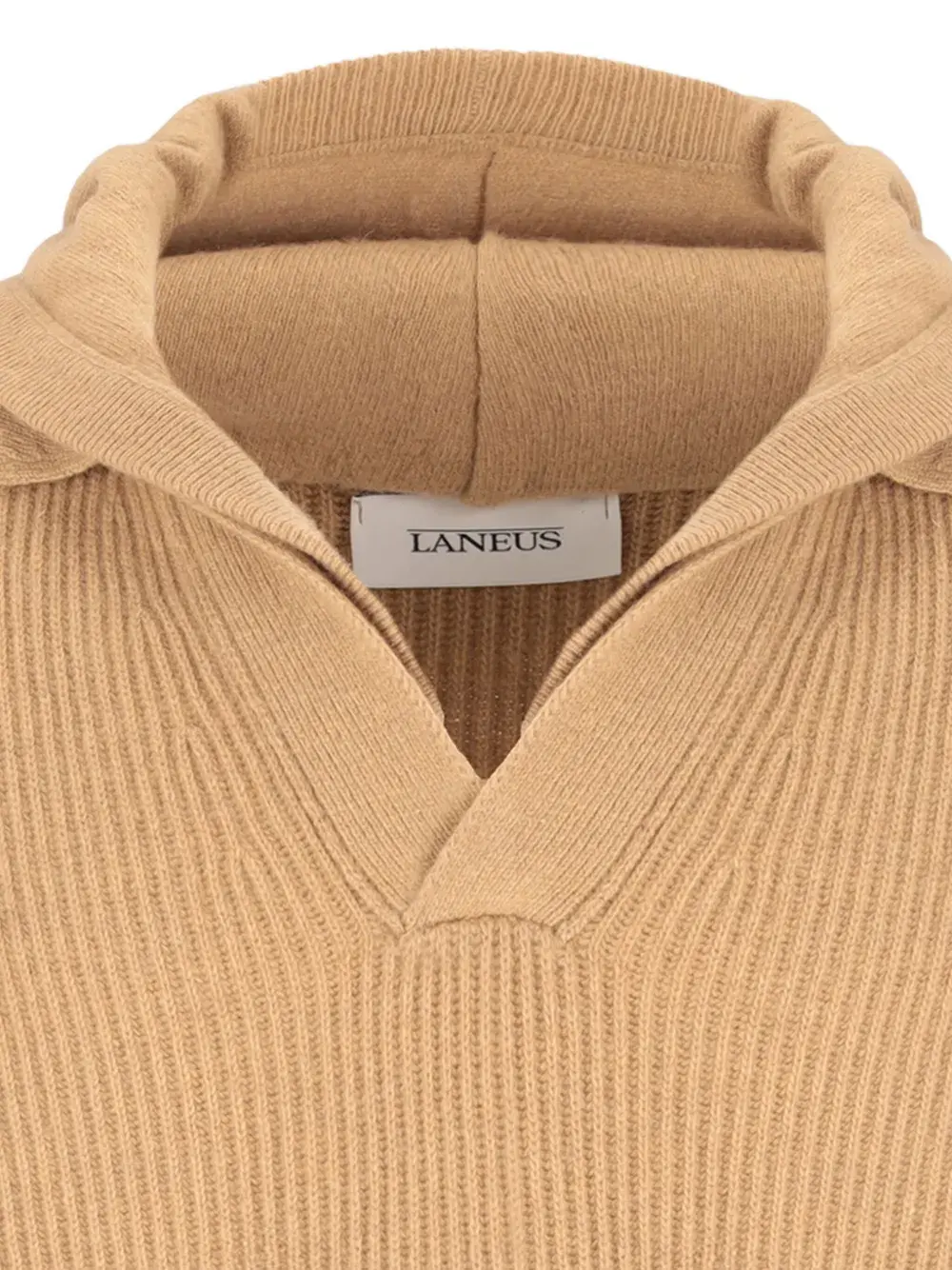 Свитер в рубчик с капюшоном Laneus, коричневый