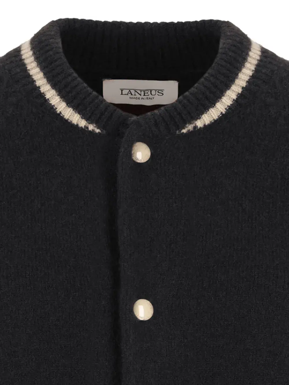 Черные кнопки спереди, ребристые манжеты и нижний край