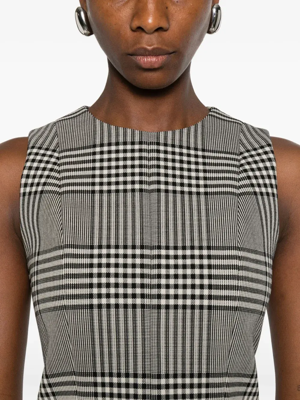 Серый узор "Принц Уэльский" (клетка) без рукавов круглый вырез приталенный силуэт расклешенная юбка