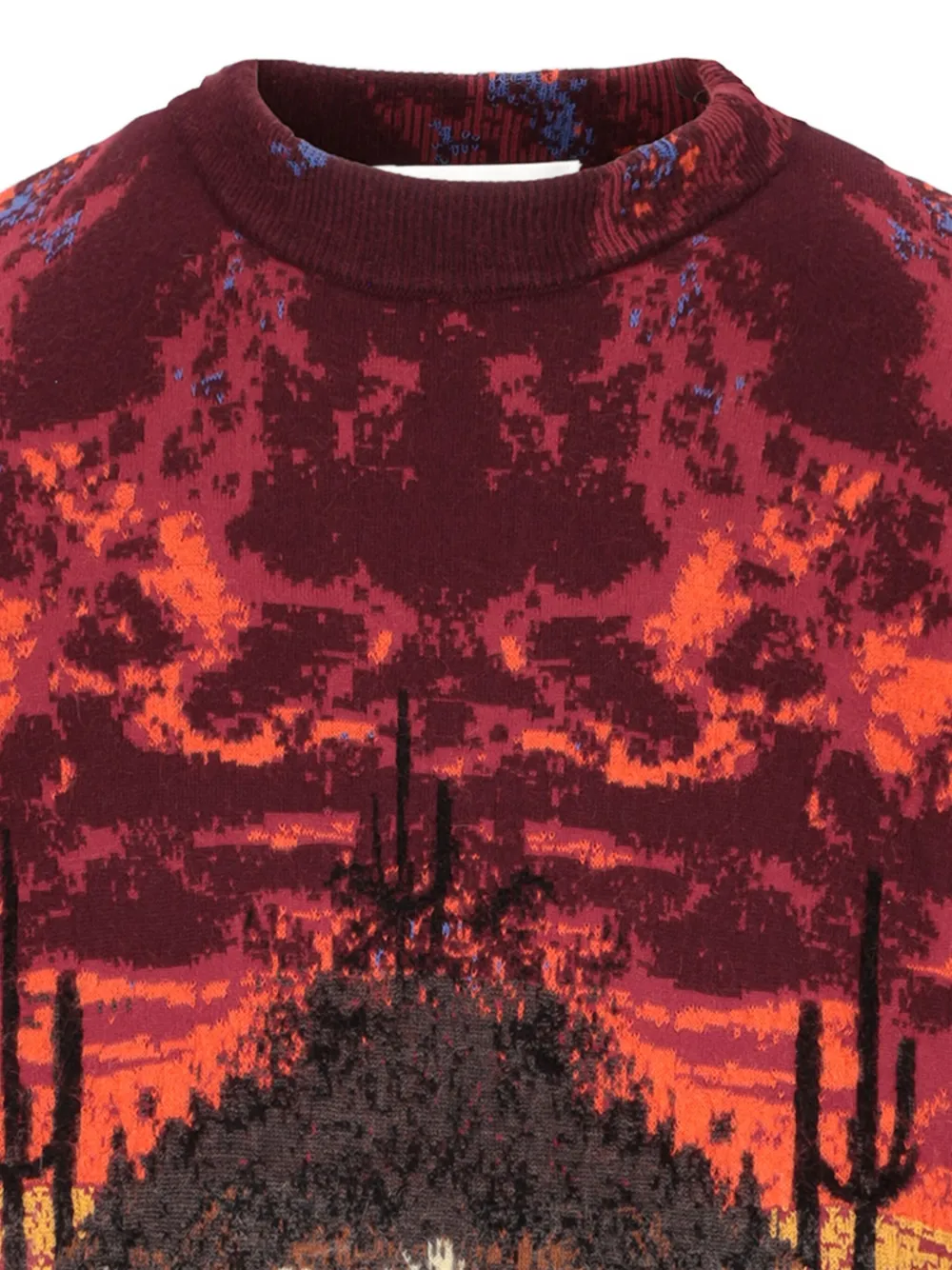 Красный/многоцветный узорный жаккард, круглый вырез, длинные рукава, ребристый низ, ребристые манжеты