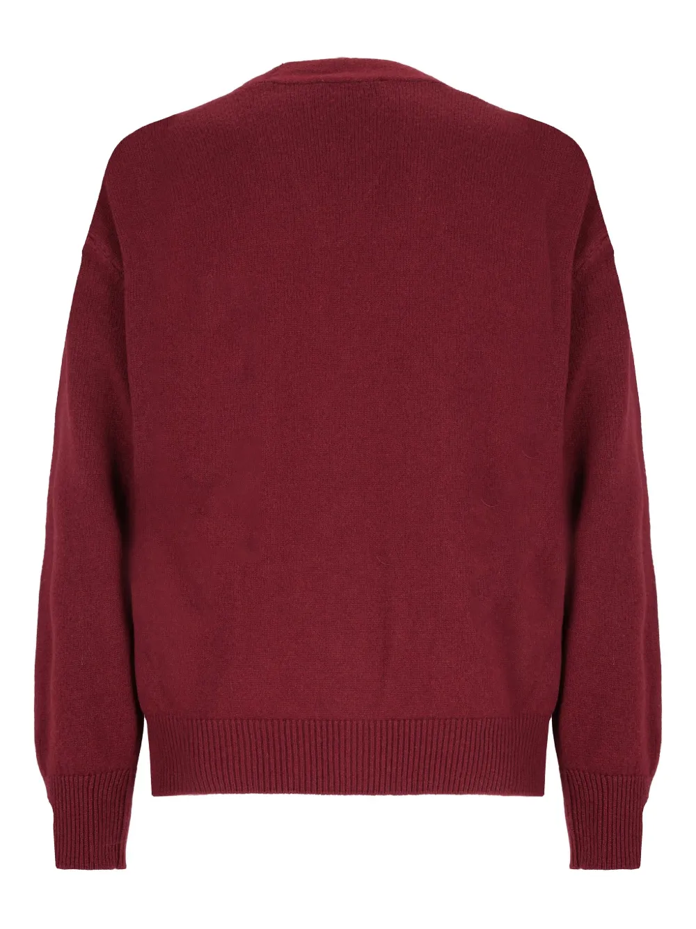 Бордовый V-образный вырез, застежка на пуговицы спереди, ребристый низ и манжеты, два передних накладных кармана