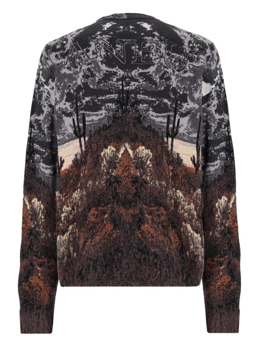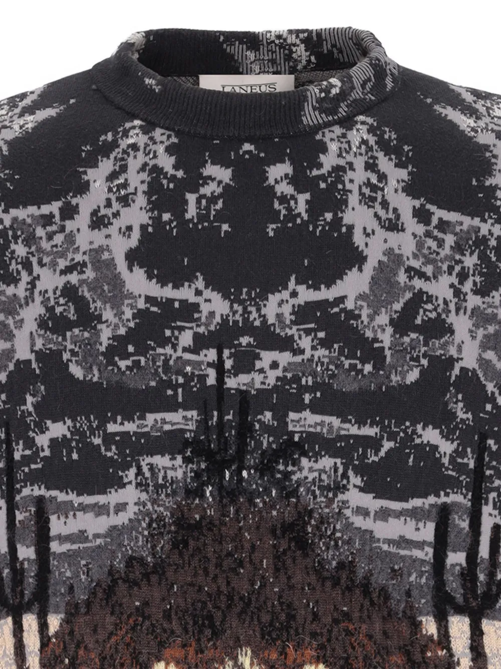 Коричневый/многоцветный узор жаккард круглый вырез длинные рукава ребристая отделка