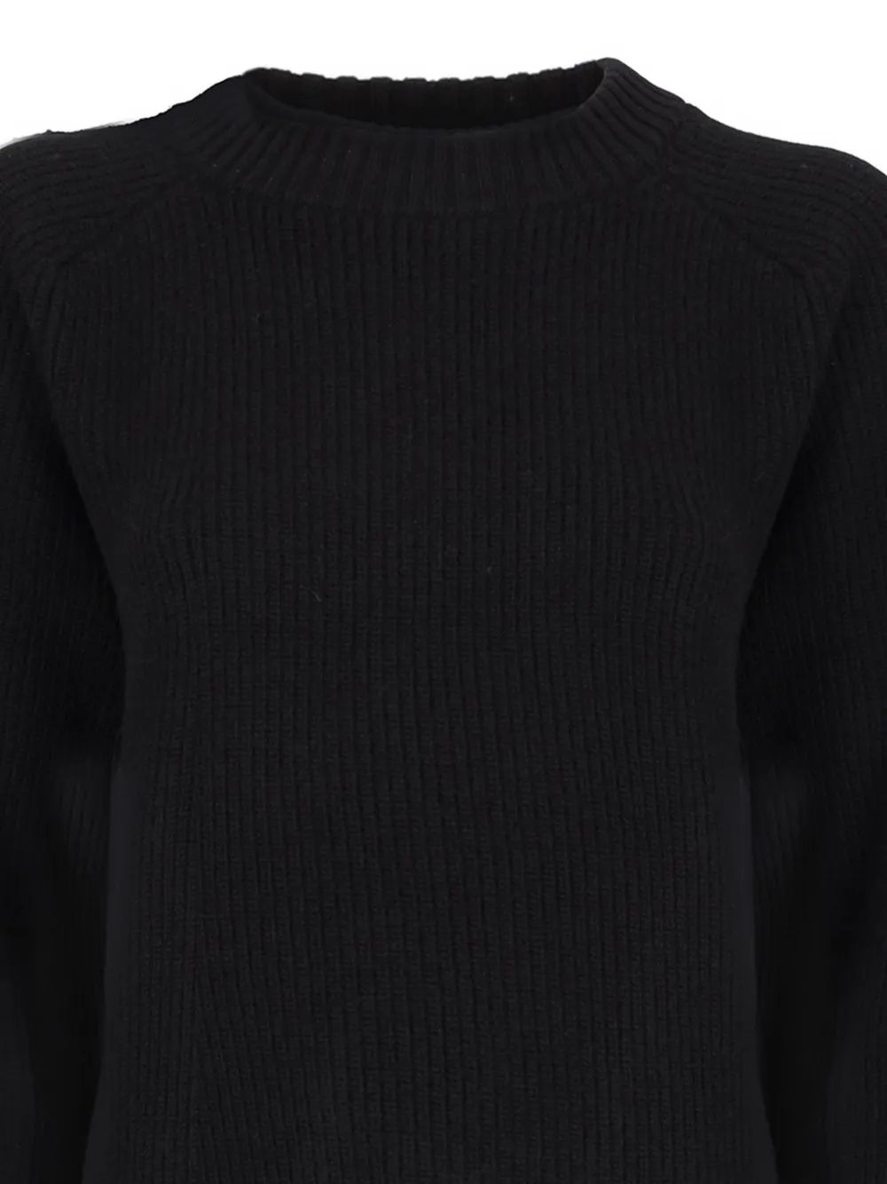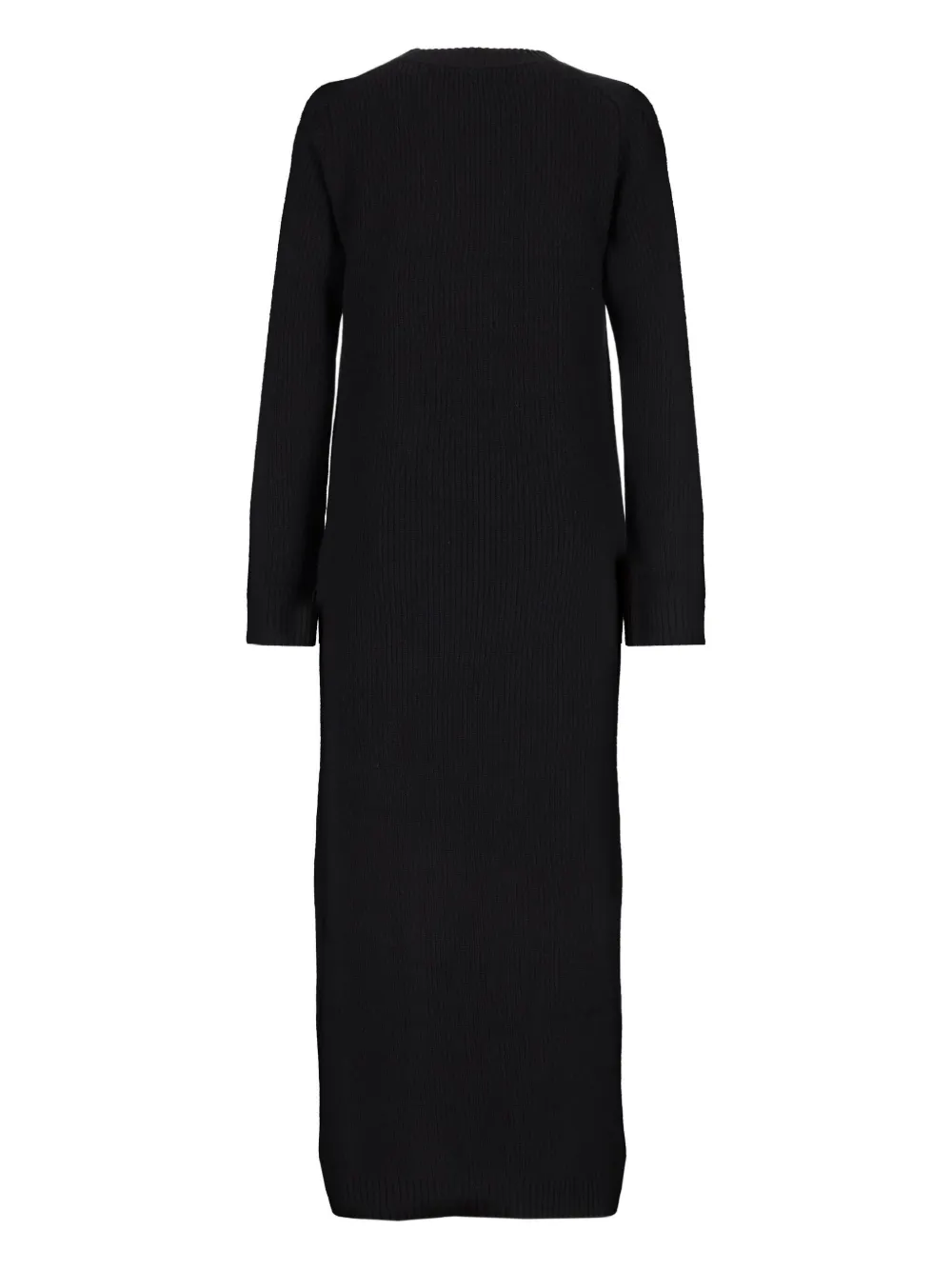 Черная вязаная конструкция, длинные рукава, круглый вырез, боковой разрез