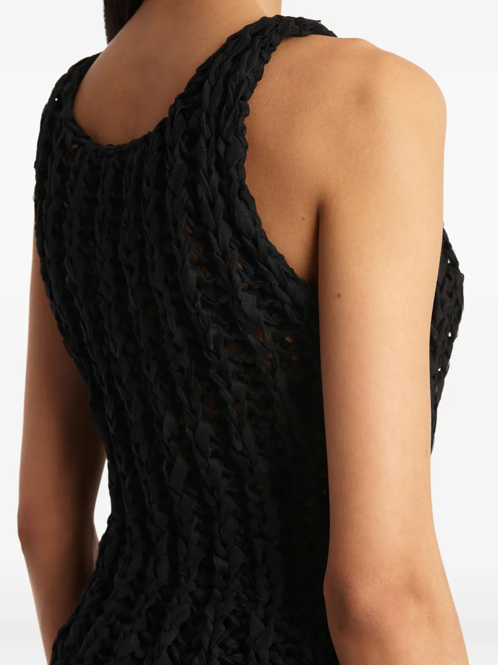 Черный топ без рукавов с круглым вырезом, ажурным дизайном и текстурированной отделкой