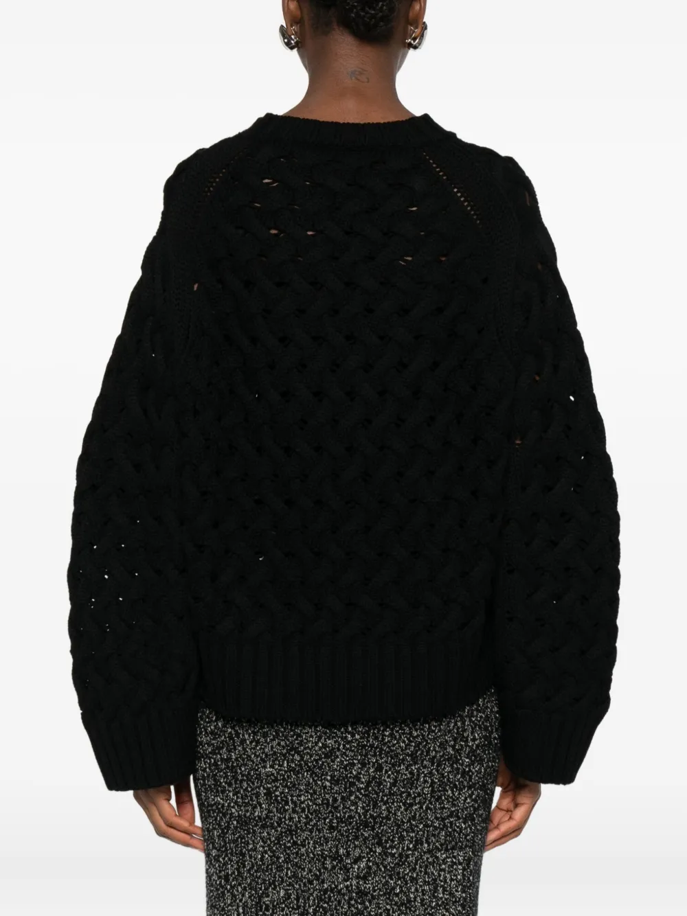 Черный джемпер в крупную вязку с круглым вырезом и длинными рукавами