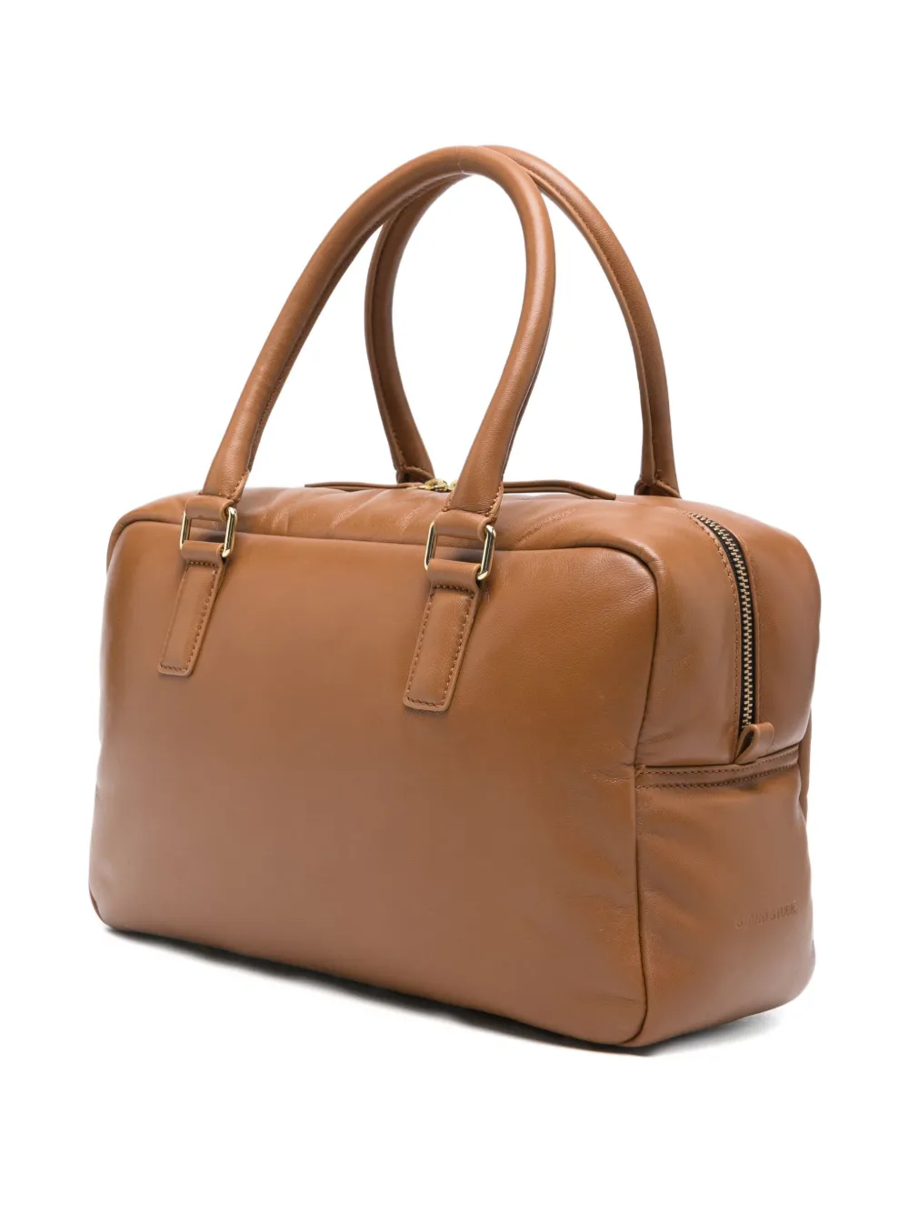 Светло-коричневая кожаная сумка с верхними ручками и застежкой-молнией