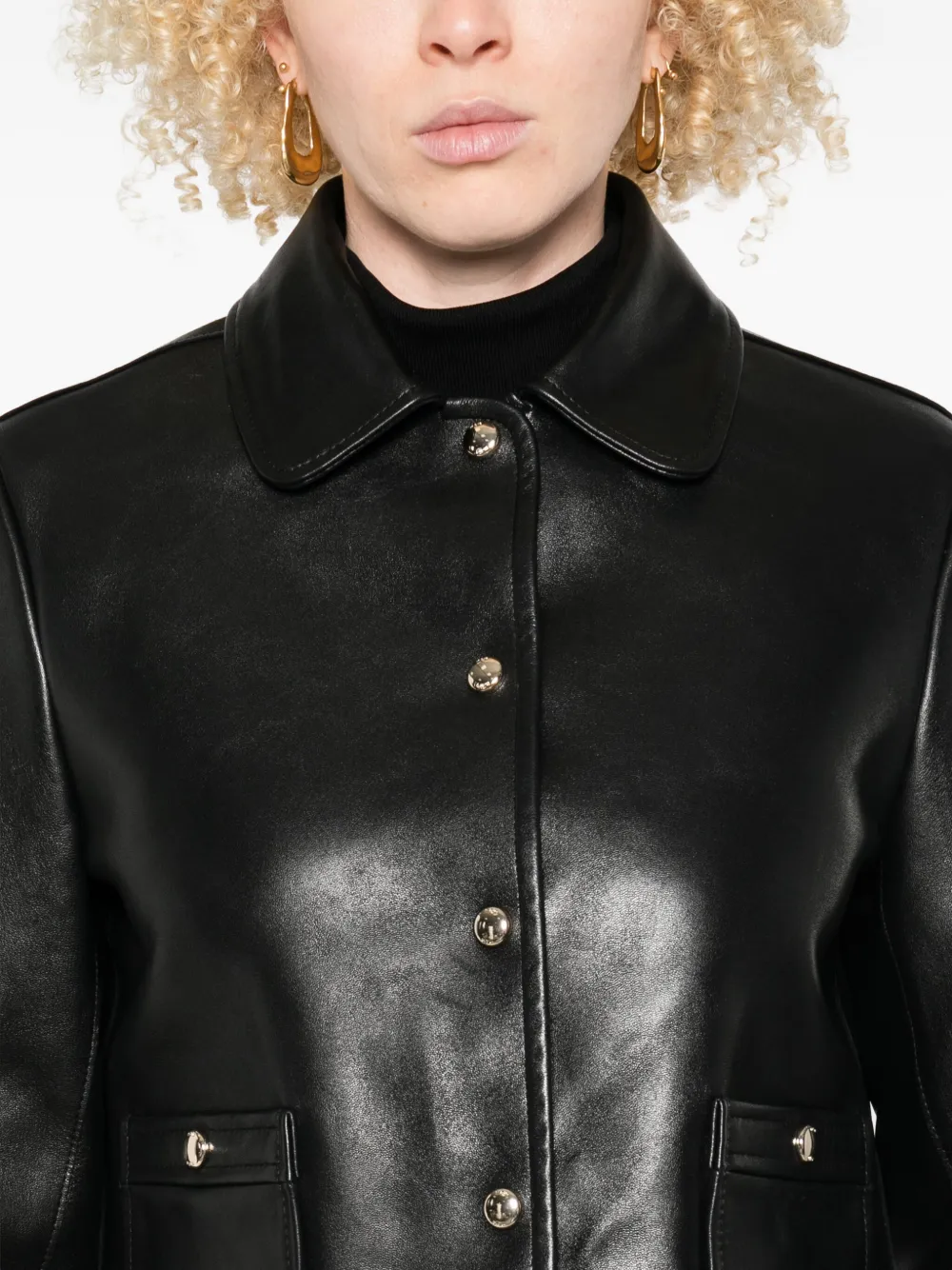 Укороченная кожаная куртка Maje, черный