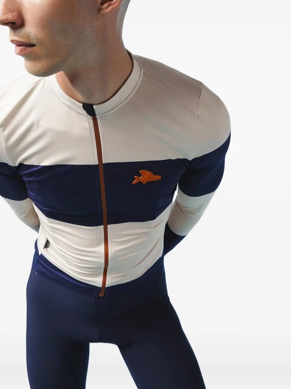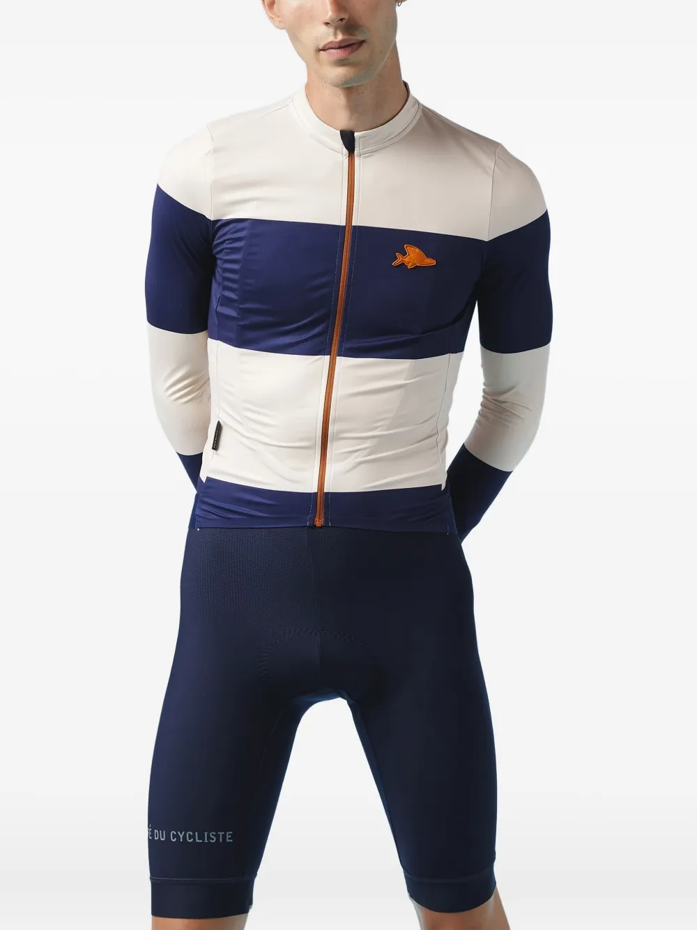 Темно-синяя кофта с длинными рукавами, полной застежкой-молнией и небольшим логотипом