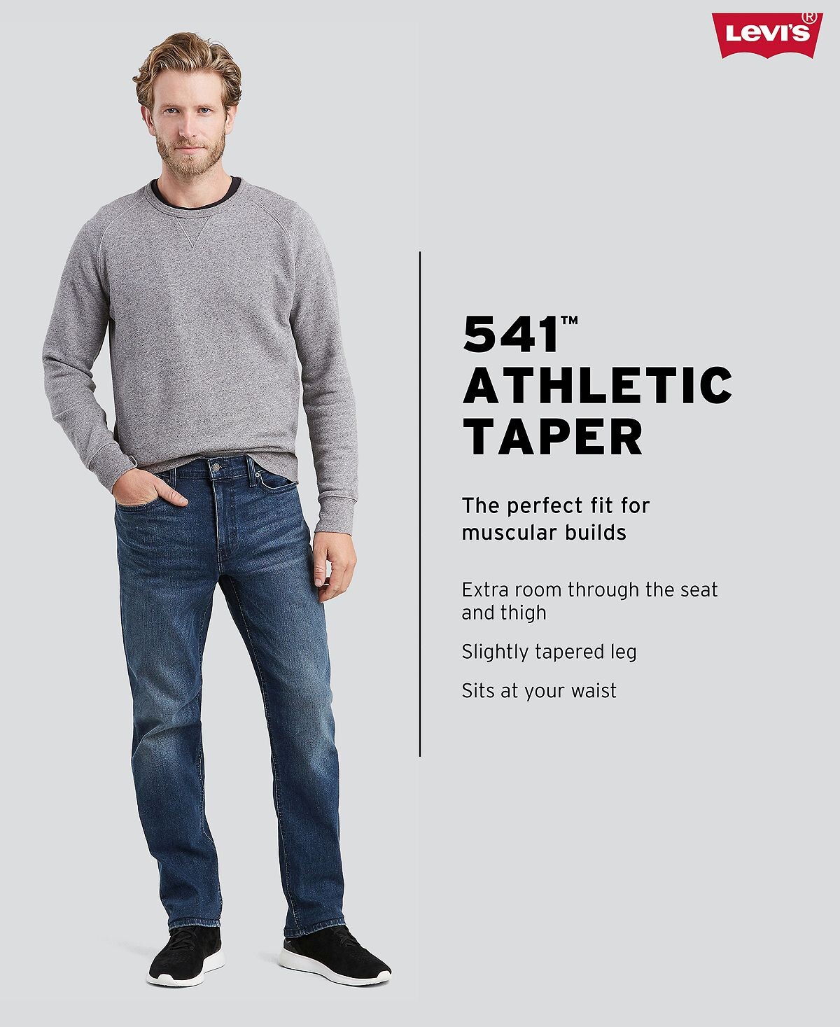 Идеально подходит для мускулистого телосложения. Наши джинсы 541 Athletic Taper Fit дают вам больше места в бедрах и посадке, но начинают сужаться от колена к лодыжке, создавая четкую и обтекаемую эстетику.