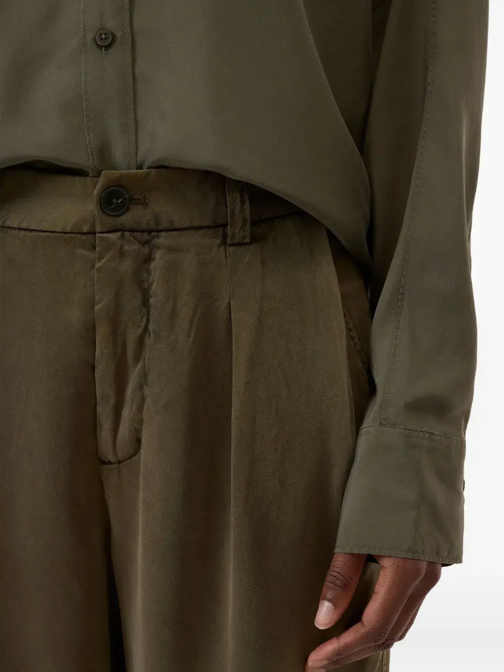 Оливково-зеленый плиссированная передняя часть застежка на пуговицах боковые карманы прямые брючины