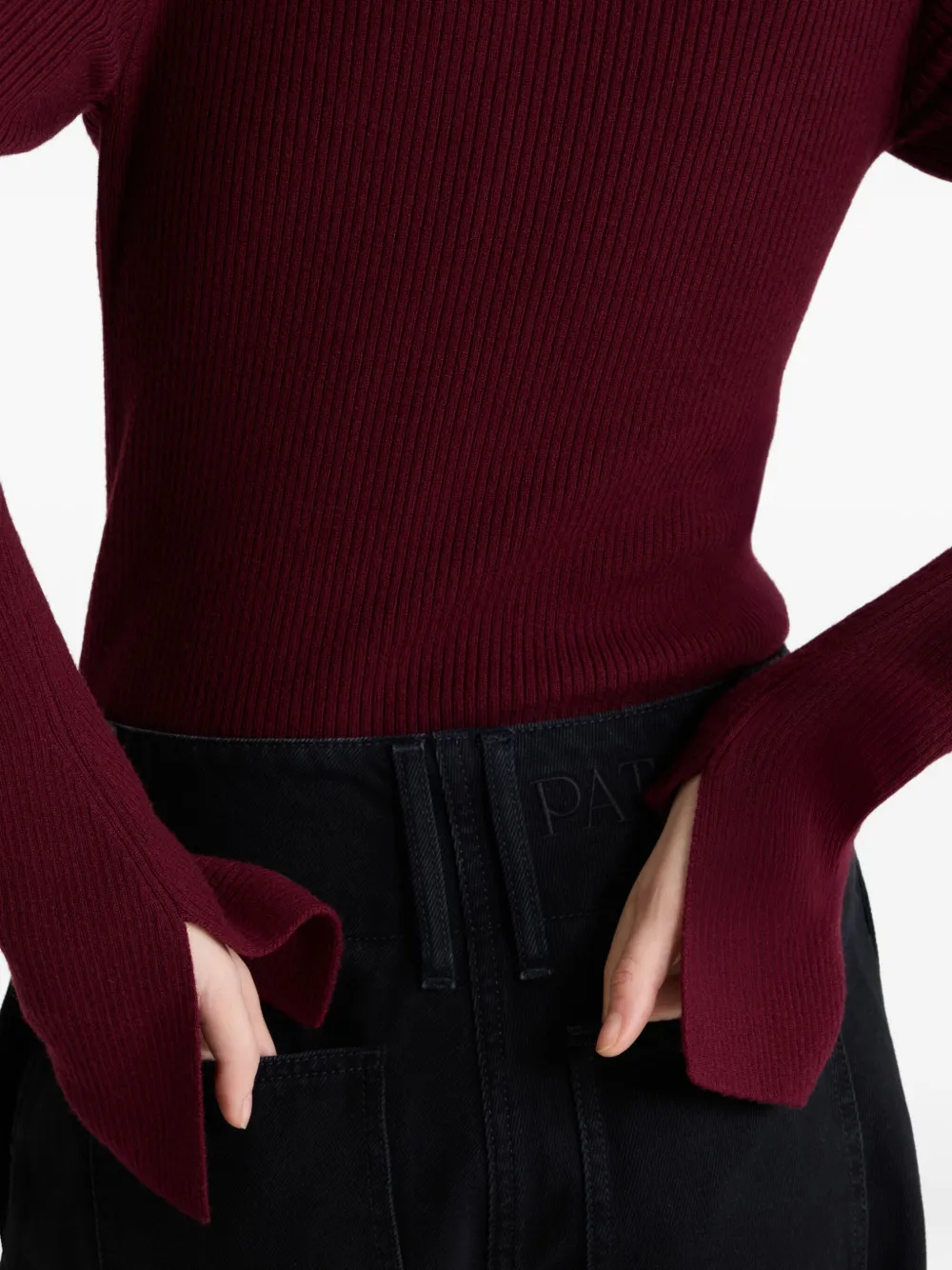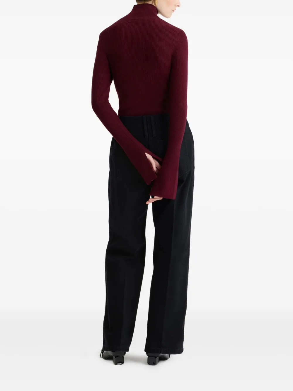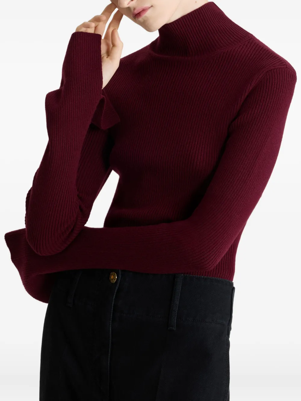 Джемпер в рубчик с высоким воротником PATOU, красный