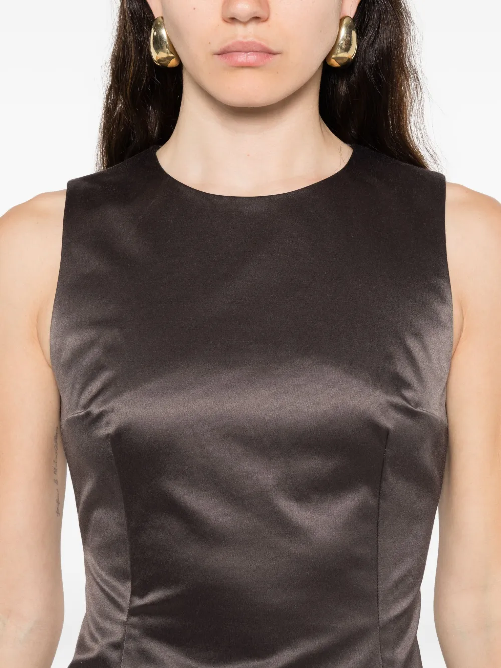 Серый без рукавов круглый вырез скрытая застежка-молния длина до бедра