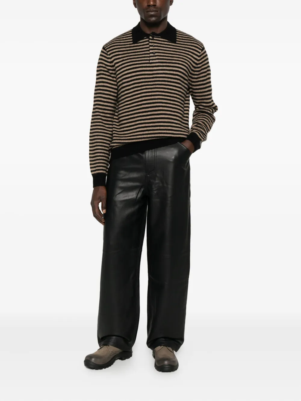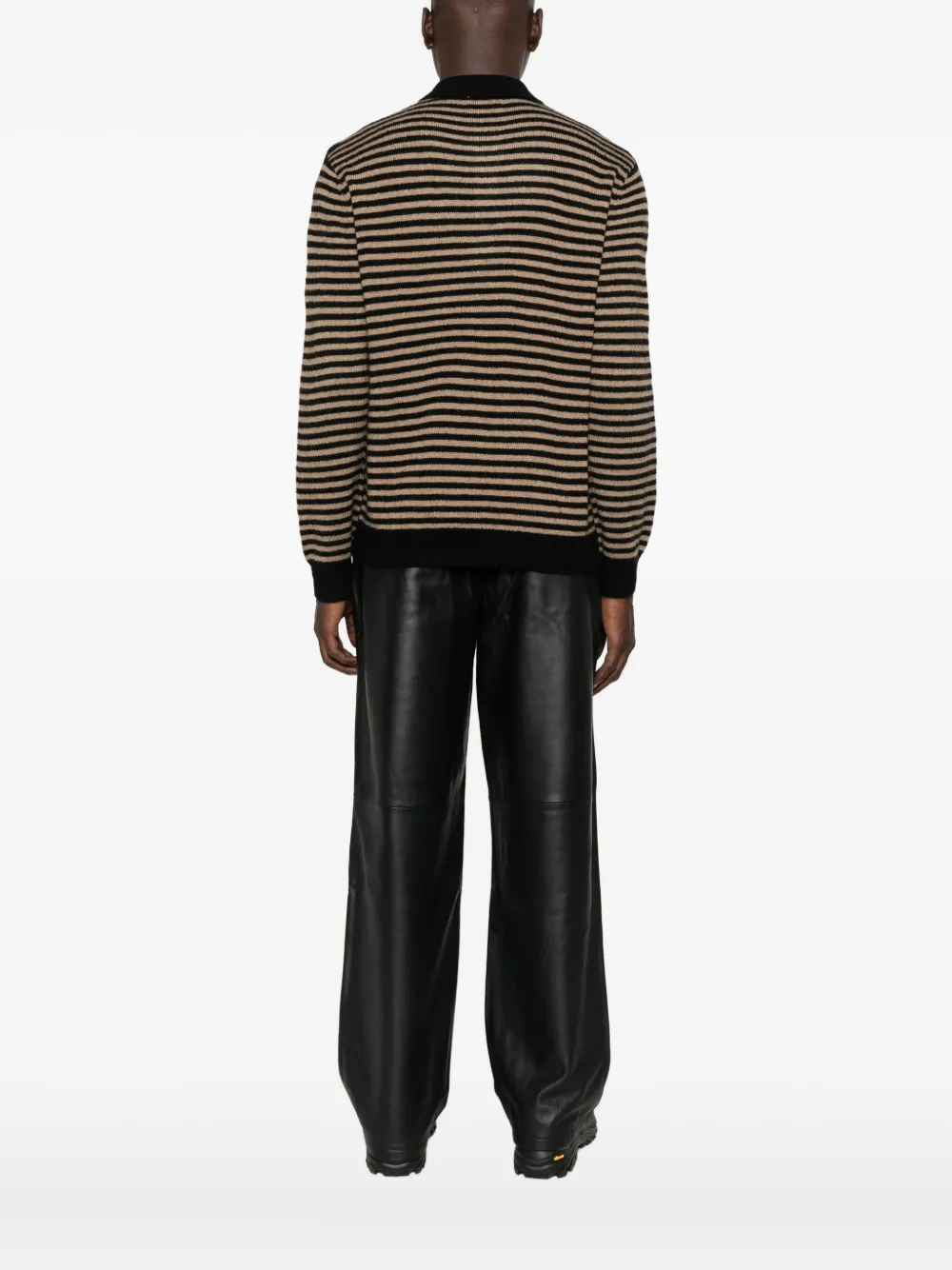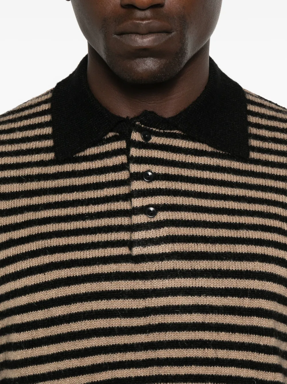 Черный горизонтальный полосатый узор длинные рукава застежка на пуговицы спереди рубчатый низ поло-воротник