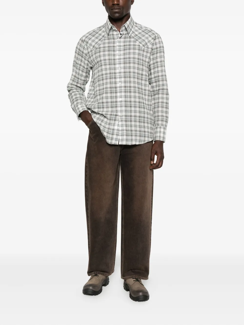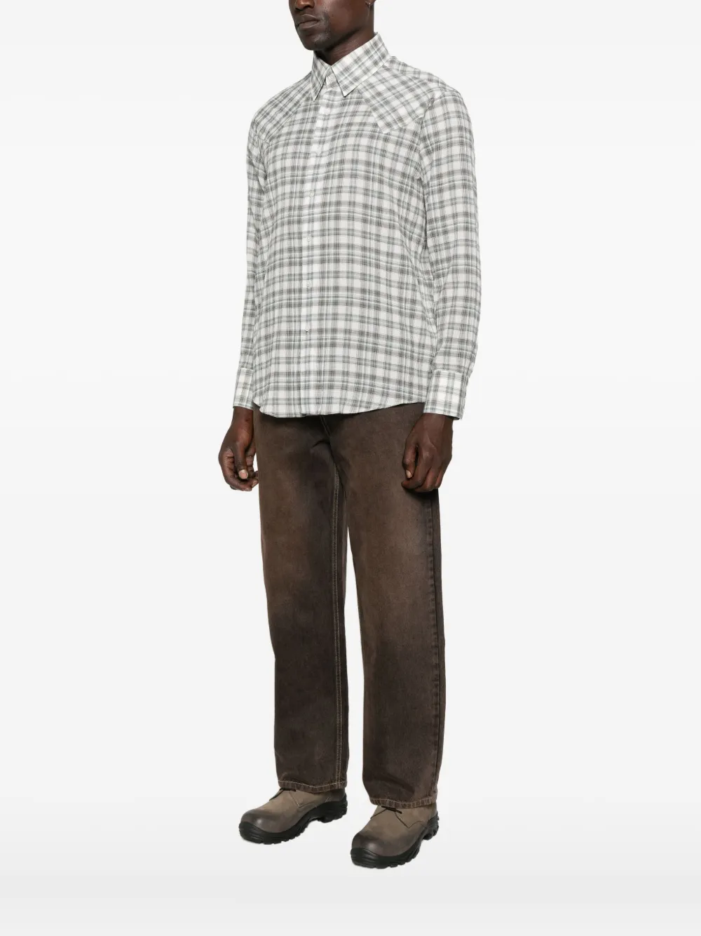 Ледяной серый клетчатый узор длинные рукава застежка на пуговицы спереди заостренный воротник