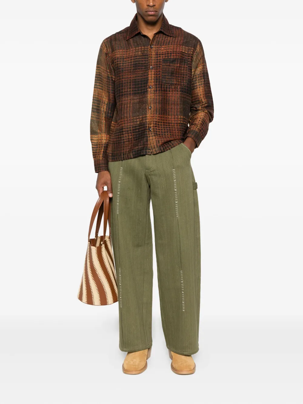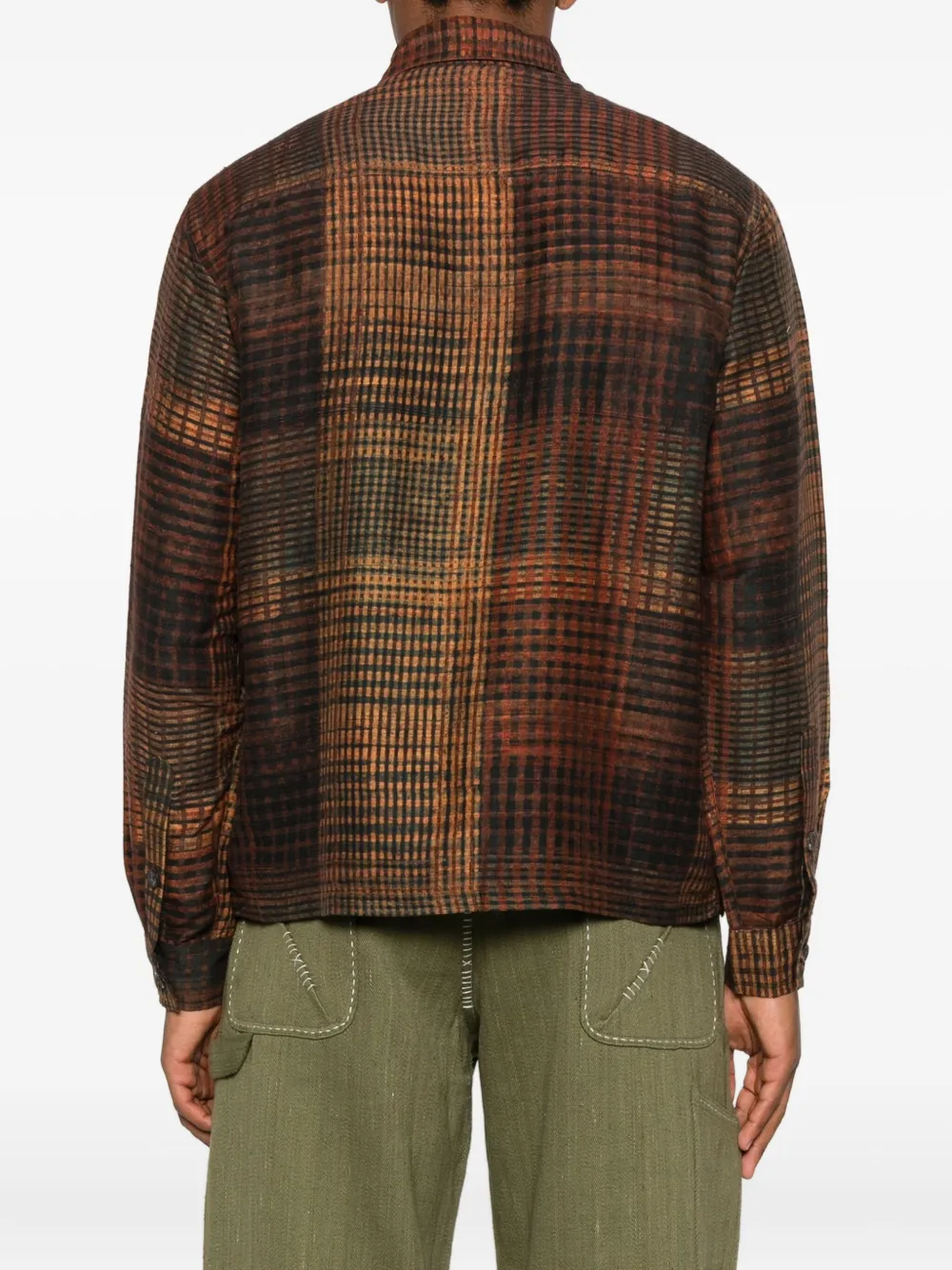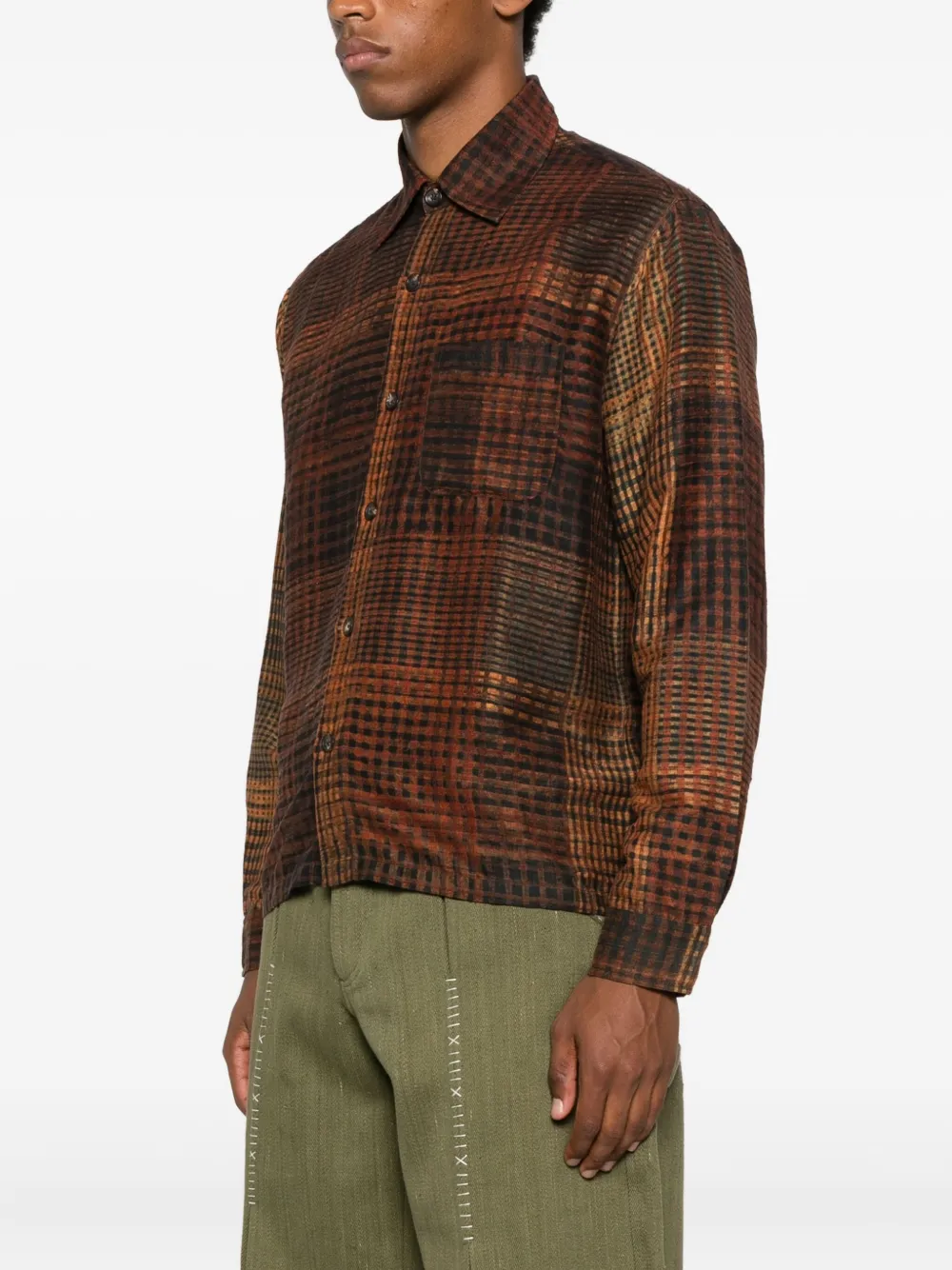 Оранжевый клетчатый узор застежка на пуговицы длинные рукава нагрудный накладной карман