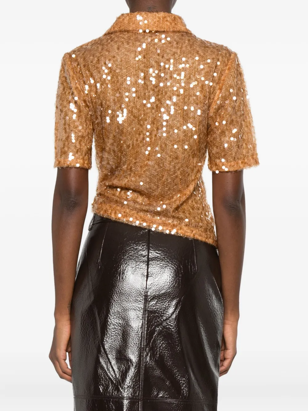 Поло с отделкой пайетками Christopher Esber, коричневый
