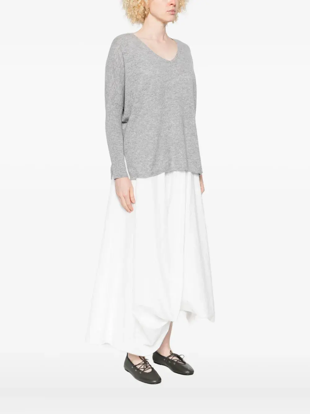 Серый V-образный вырез рубчатые манжеты длинные рукава