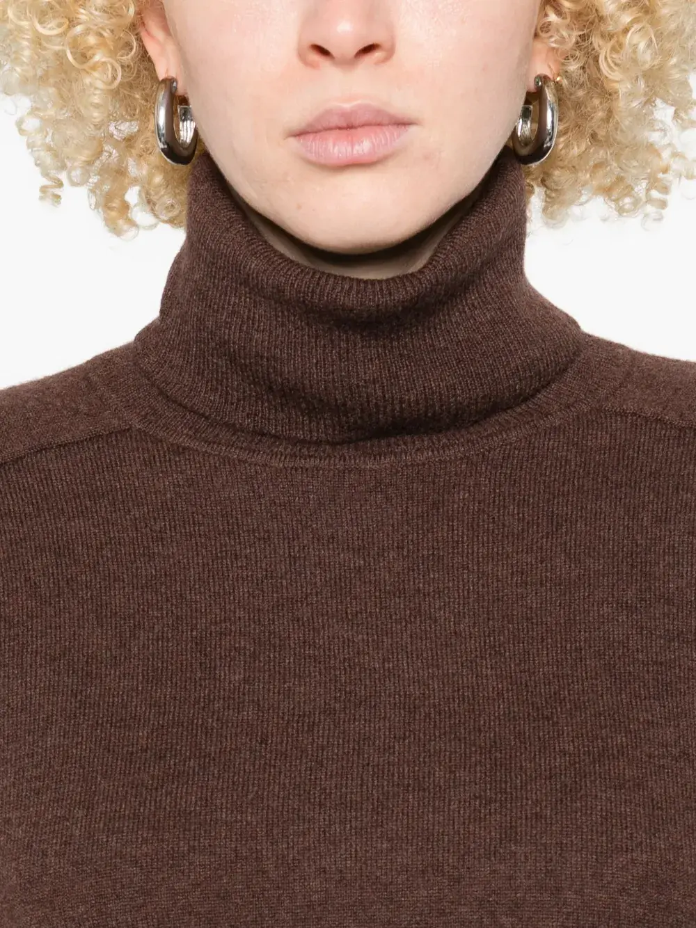 Коричневый воротник-водолазка длинные рукава прямой подол